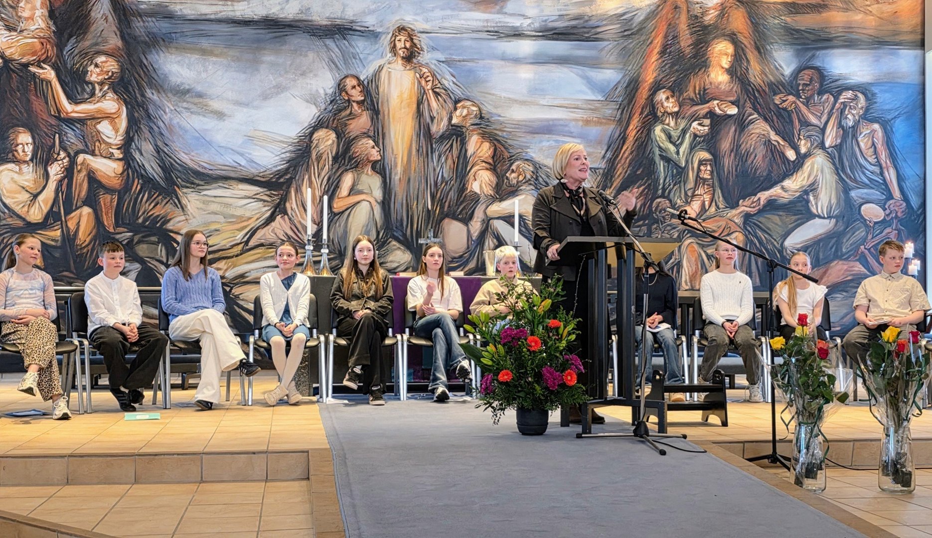 Forseti tekur þátt í lokahátíð Stóru upplestrarkeppninnar.