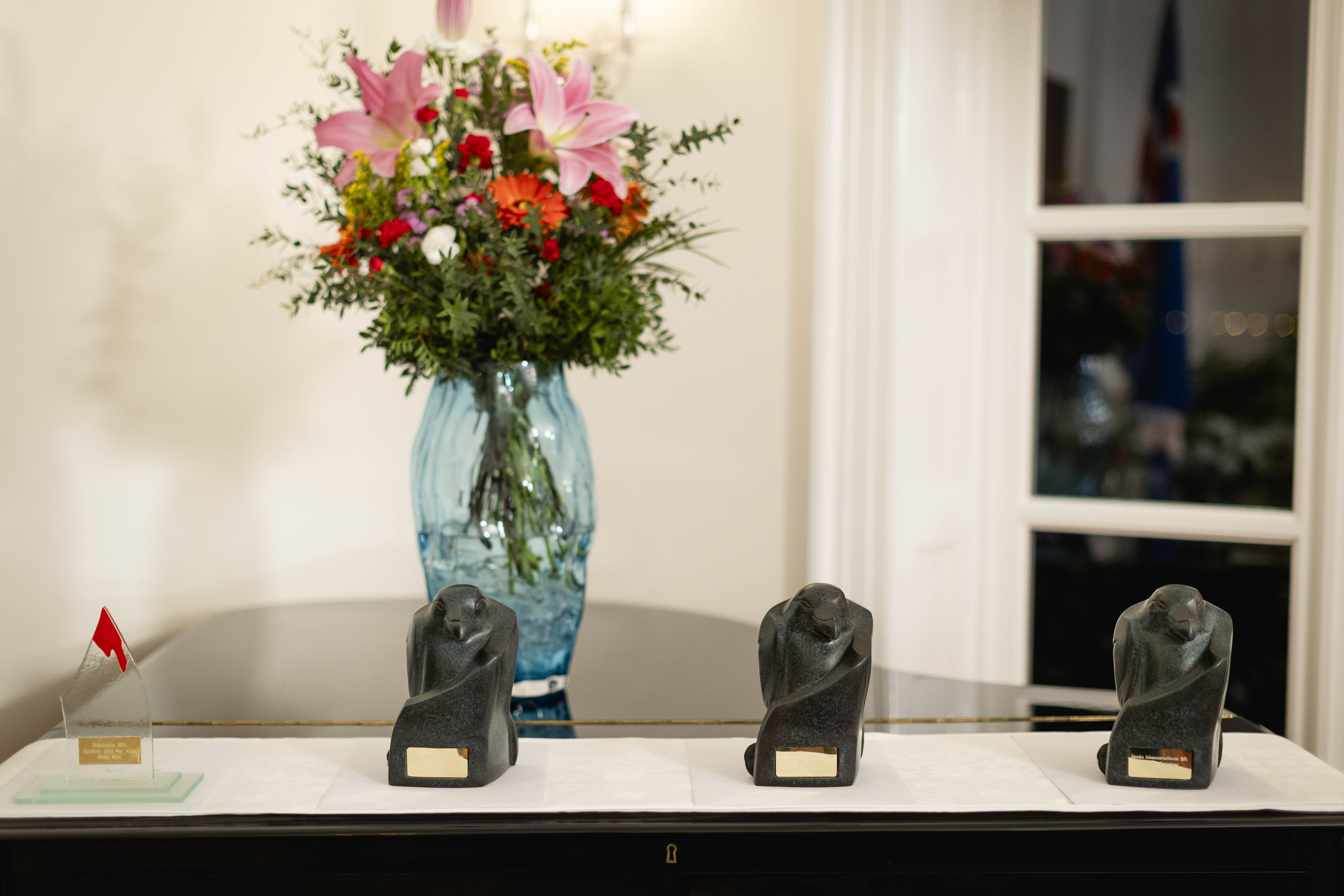 Forseti afhenti bókmenntaverðlaun við hátíðlega athöfn á Bessastöðum. Fyrst afhenti hún Blóðdropann - islensku glæpasagnaverðlaunin og var það Stefán Máni sem þau hlaut fyrir bókina Dauðinn einn var vitni. Þá afhenti hún Íslensku bókmenntaverðlaunin í þremur flokkum.