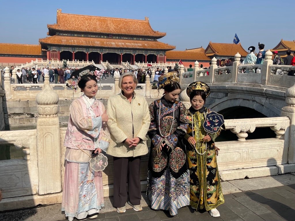 Eftir hádegi á þriðjudag, að loknum fundinum með Xi Jinping, fóru forseti Íslands og fylgdarlið í skoðunarferð um Forboðnu borgina í Peking. Forseti veitti einnig íslensku og kínversku fjölmiðlafólki viðtöl. Síðdegis átti hún síðan samtal við fjölmiðlakonuna Kelsey Cheng í samkomusal íslenska sendiráðsins. Þær ræddu meðal annars um áskoranir í umhverfismálum og samstarf Kína og Íslands á sviði jarðhita. Færri en vildu komust að til að hlýða á samtalið en í hópi gesta voru m.a. fulltrúar kínverskra fjölmiðla sem gert hafa opinberri heimsókn forseta góð skil.