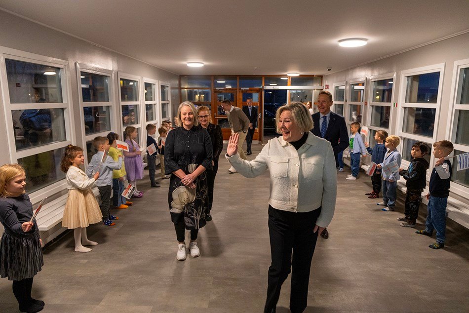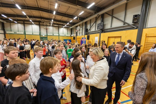 Forsetahjón ásamt nemendum í Akurskóla í Innri Njarðvík. Ljósmynd: Víkurfréttir/Hilmar.