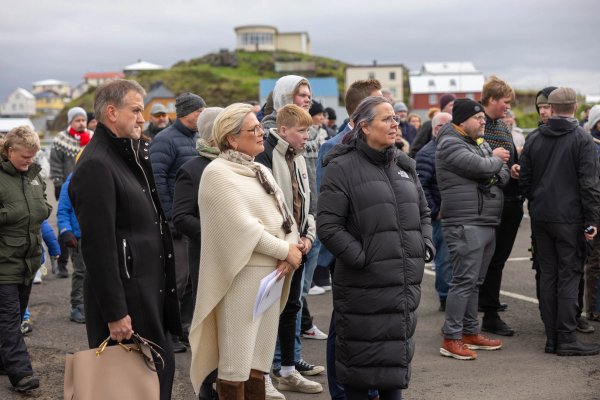Heimsókninni í Stykkishólm lauk á hátíðarsamkomu bæjarbúa á hafskipabryggjunni. Þar flutti Björgvin Sigríðarson Jakobsson bæjarstjóri hátíðarávarp og kynnti forseta á svið þar sem hún færði bæjarbúum hátíðarkveðju.