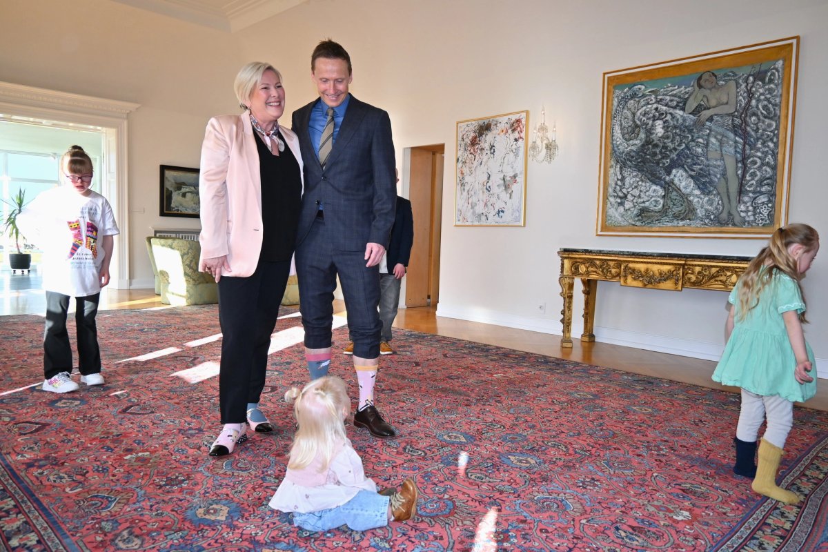 Forsetahjón taka á móti pari af mislitum sokkum