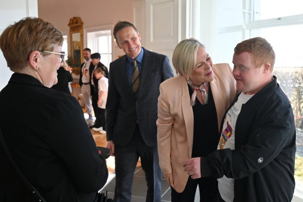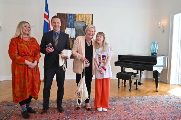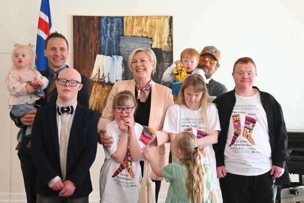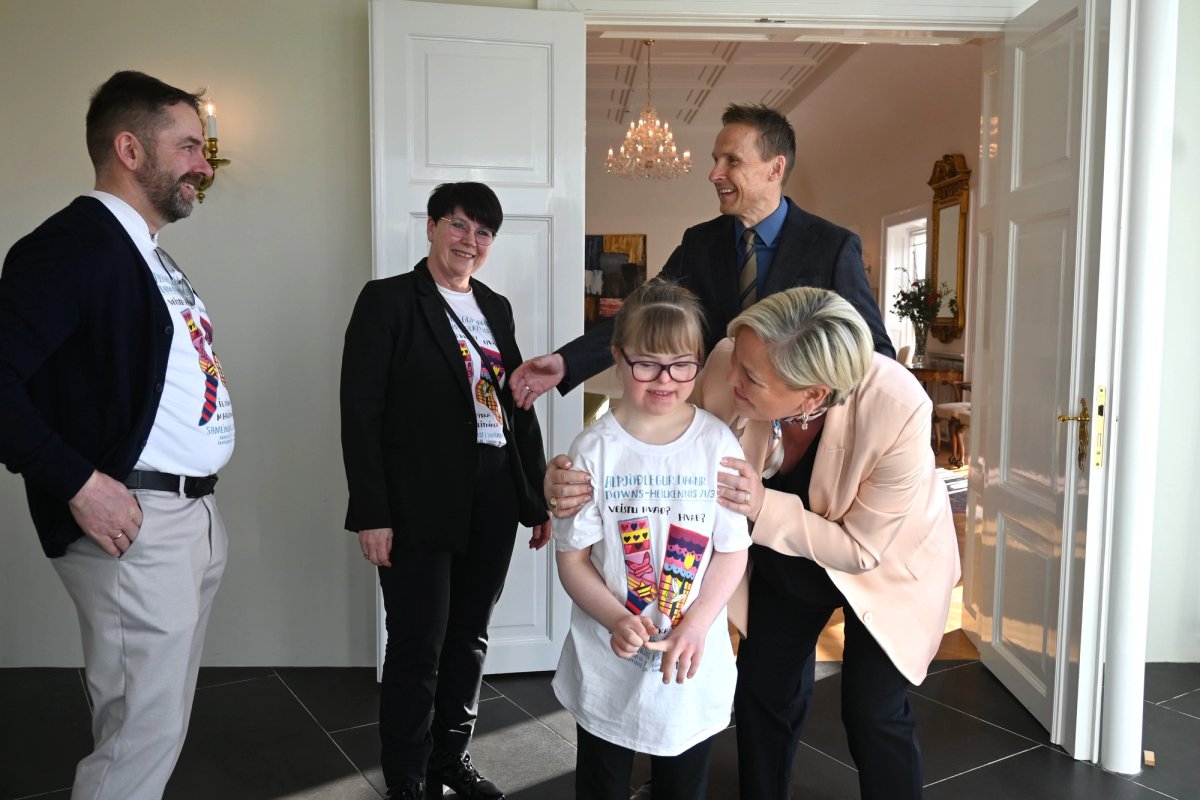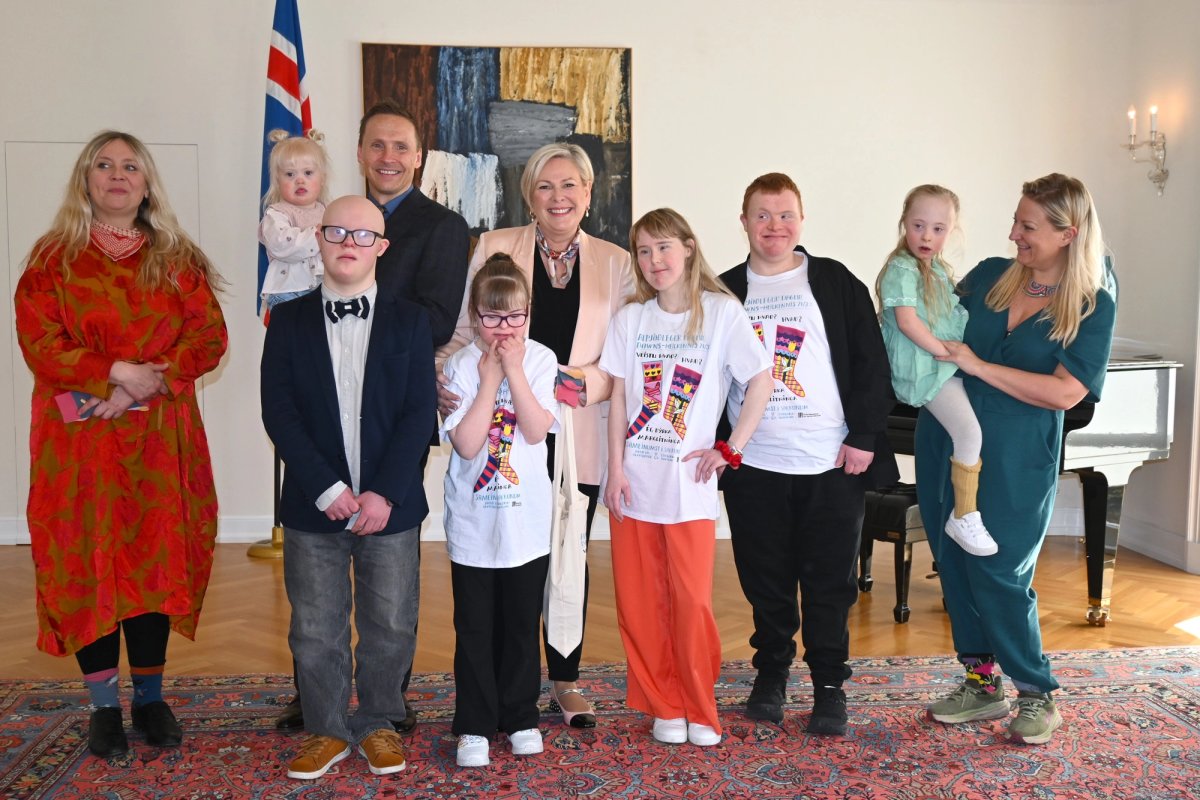Forsetahjón taka á móti fulltrúum Félags áhugafólks um Downs-heilkennið sem færa þeim mislita sokka á alþjóðadegi Downs heilkennisins þann 21. mars. Dagsetningin er táknræn og vísar til þess að Downs heilkennið orsakast af aukalitningi í litningapari 21.