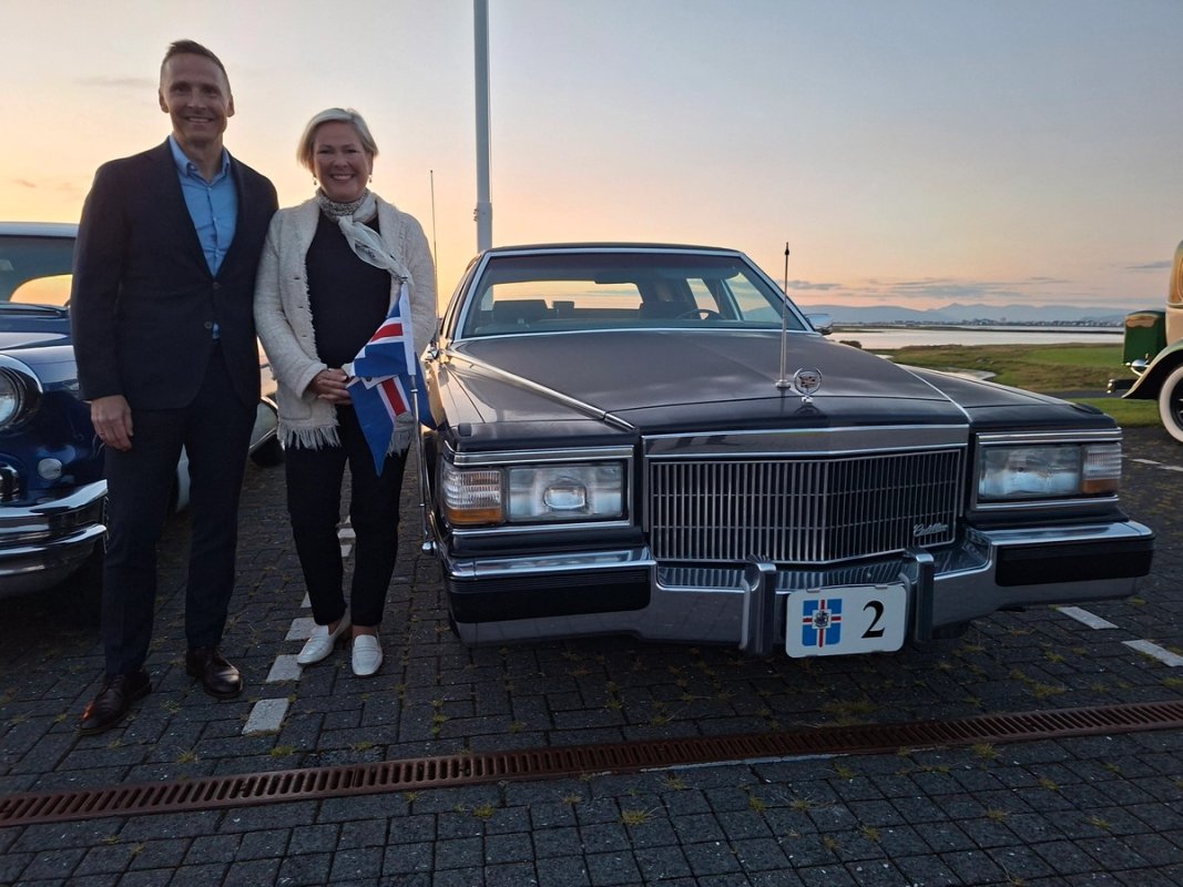 Forsetahjón taka á móti Fornbílaklúbbi Íslands.