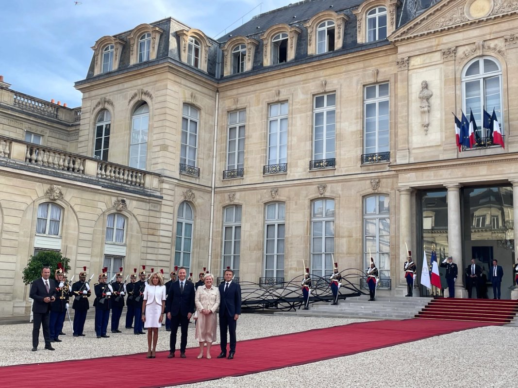 Forsetahjón sækja móttöku í Elysée-höll í París í boði forsetahjóna Frakklands. Emmanuel Macron, forseti Frakklands, og eiginkona hans Brigitte Macron buðu forseta Íslands, öðrum ráðamönnum og fulltrúum íþróttahreyfingarinnar til móttöku í tilefni af setningarhátíð Paralympics leikanna sem fara nú fram í París.