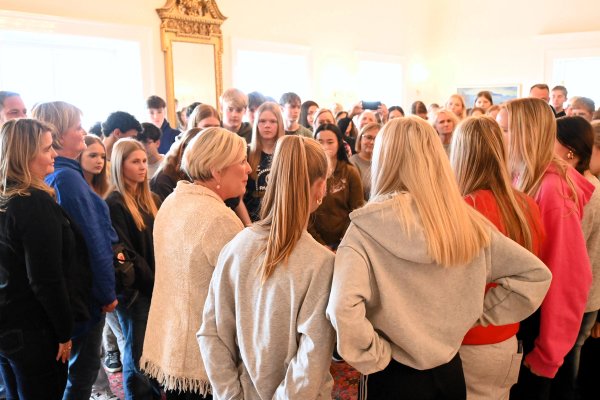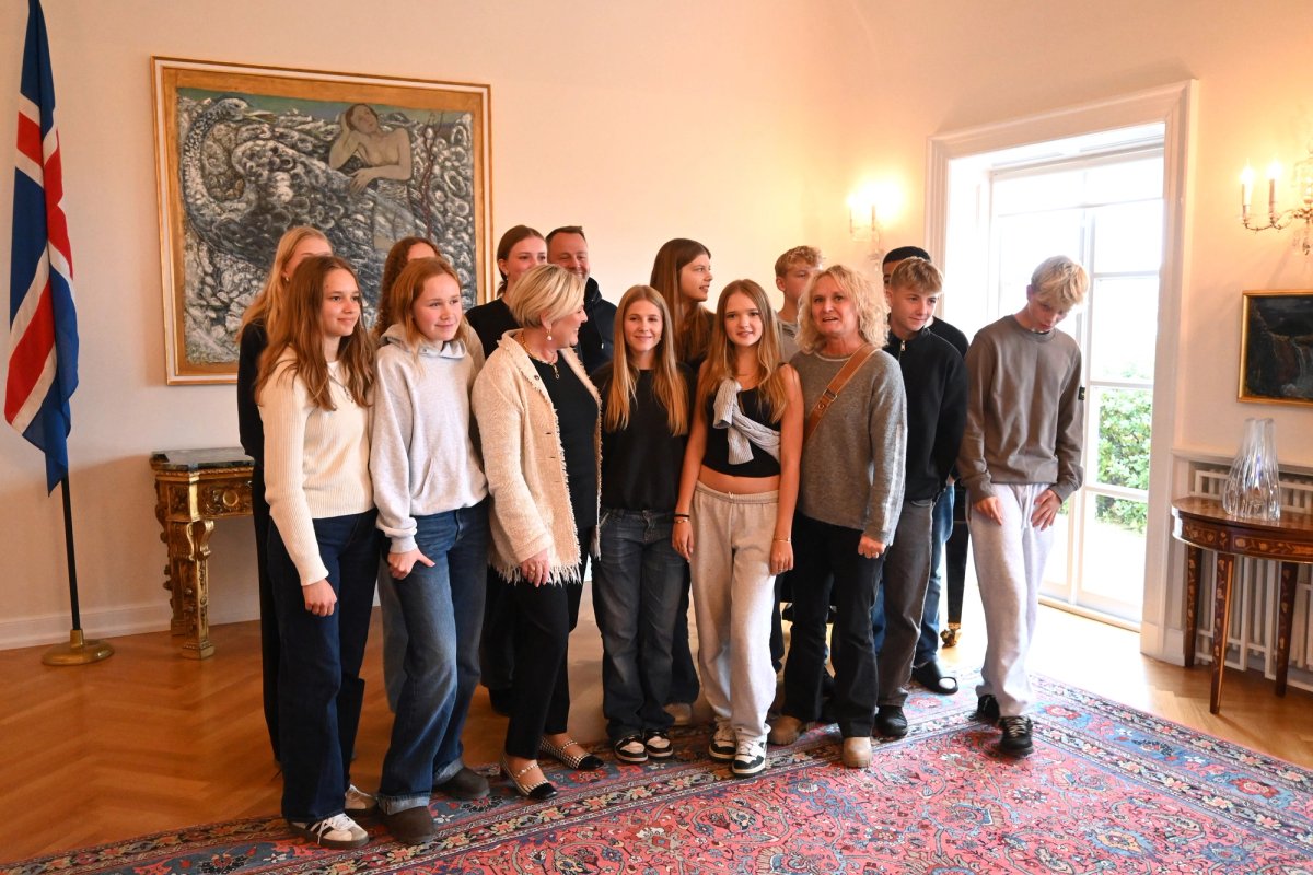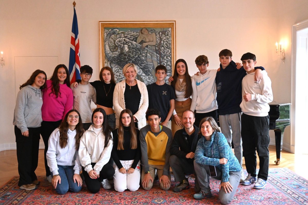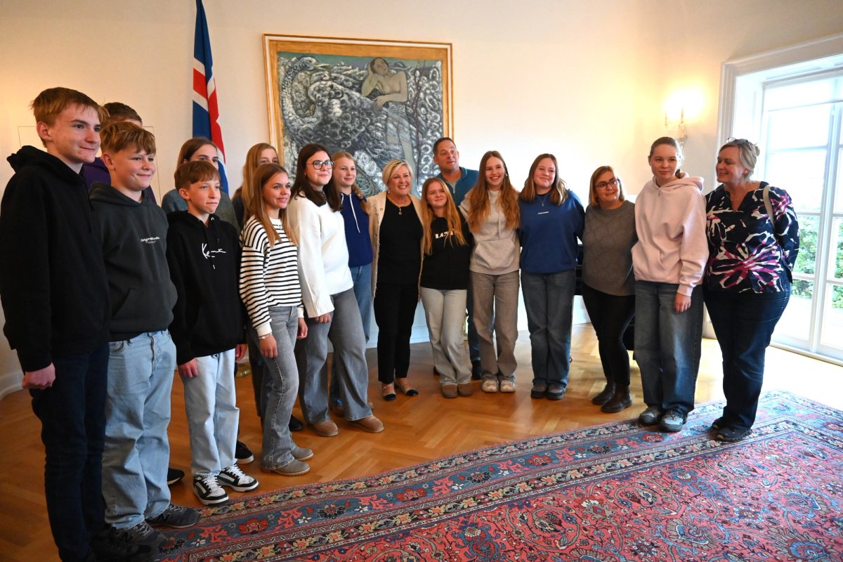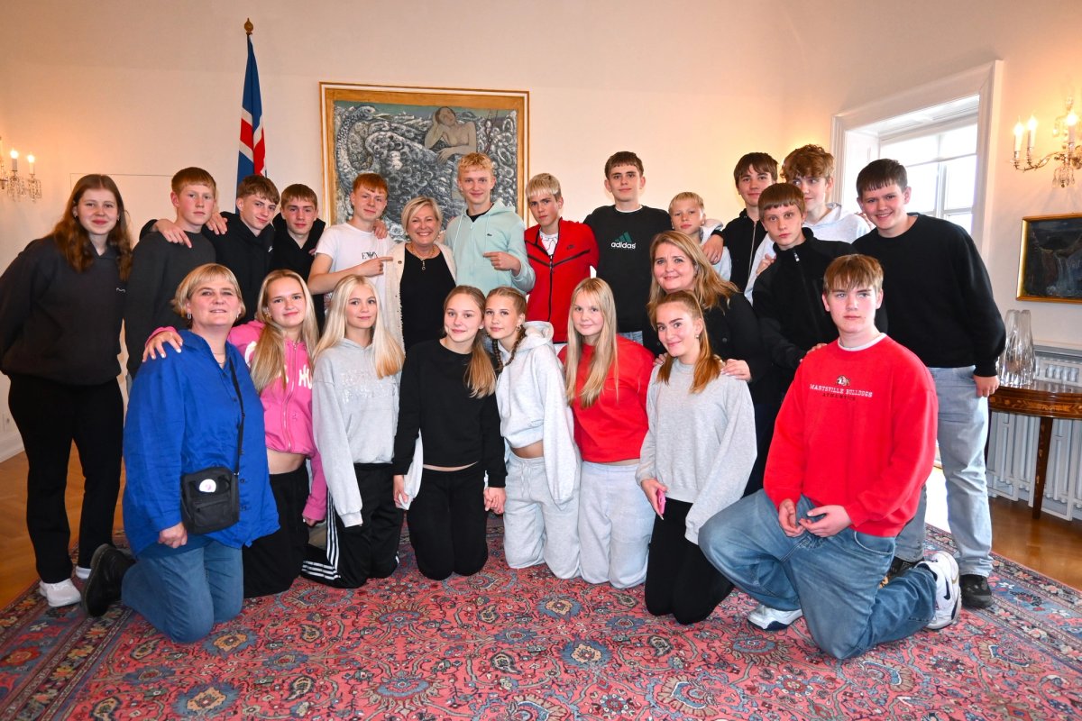 Forseti tekur á móti nemendahópi á vegum Erasmus ungmennaskipta. Nemendurnir eru frá Danmörku, Þýskalandi og Spáni og dvelja á Íslandi í eina viku í félagi við íslenska jafnaldra sína. Forseti ræddi við nemendurna um helstu áherslur Erasmus-verkefnisins sem eru loftlagsbreytingar, tölvur og tækni í skólastarfi ásamt inngildingu allra barna.