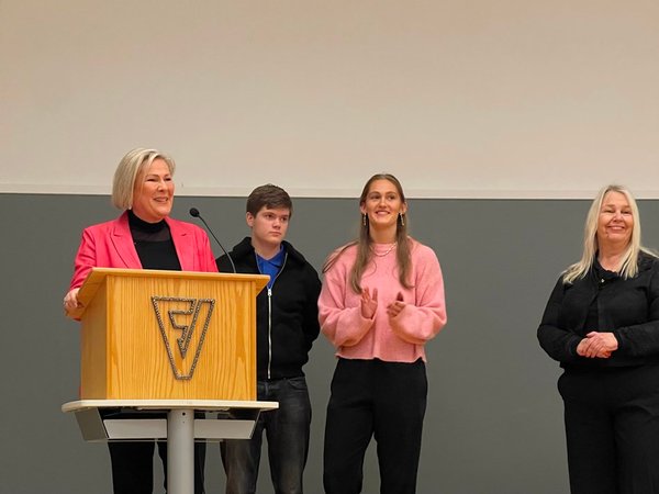 Næst var farið í Framhaldsskóla Vestmannaeyja sem hefur á undanförnum árum markað sér sterka stöðu í kennslu málm- og vélstjórnargreina. Þar tók Helga Kristín Kolbeins skólameistari á móti forseta sem ávarpaði nemendur á sal og ræddi þar meðal annars um verkefnið ,,Riddarar kærleikans”. Í kjölfarið fór fram kynning á verknáminu í skólanum sem hlaut nýlega Íslensku menntaverðlaunin.