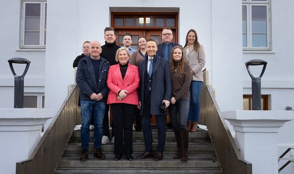 Í hádeginu var forsetahjónum og fylgdarliði boðið til hádegisverðarfundar í Ráðhúsi Vestmannaeyjabæjar ásamt bæjarstjórn og bæjarritara. Íris Róbertsdóttir bæjarstjóri kynnti helstu áherslur og áskoranir í rekstri bæjarins en eftir það var almenn umræða um viðfangsefni, áskoranir og framtíðarsýn bæjarstjórnar.