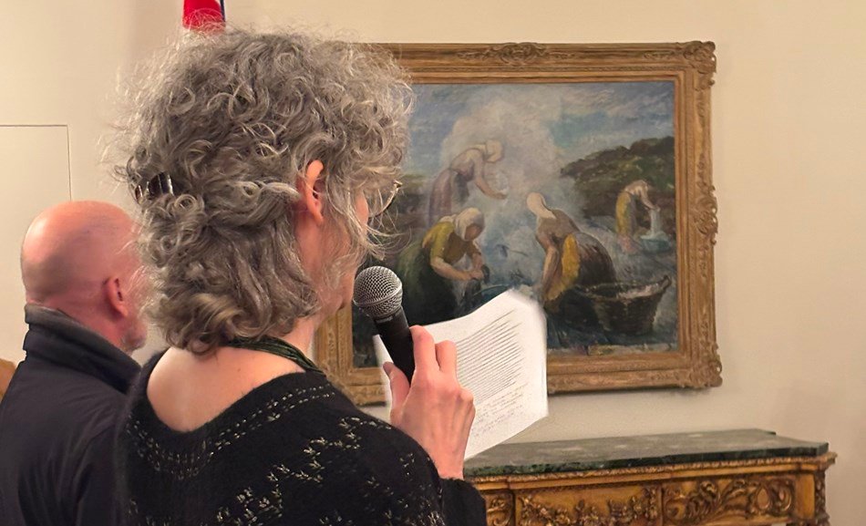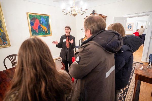 Forsetahjón tóku á móti nærri 500 gestum á Bessastöðum á Safnanótt. Anna Jóhannsdóttir listfræðingur, sem starfar hjá Listasafni Íslands, gerði grein fyrir málverkum úr eigu safnsins sem prýða nú forsetasetrið. Gestir nutu einnig leiðsagnar starfsfólks embættisins og nemenda í sagnfræði við Háskóla Íslands.