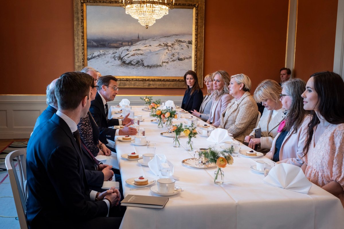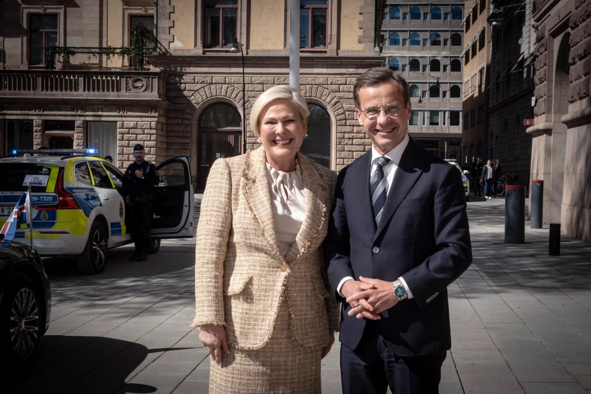 Forseti á fund með Ulf Kristersson, forsætisráðherra Svíþjóðar, á meðan á ríkisheimsókn hennar til Svíþjóðar stendur. Fundinn sátu einnig Þorgerður Katrín Gunnarsdóttir utanríkisráðherra, Maria Malmer Stenergard utanríkisráðherra og Carl-Oskar Bohlin almannavarnaráðherra.