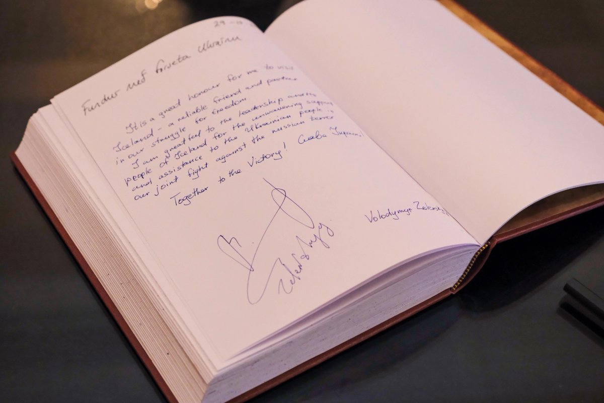 Á einkafundi forsetanna, sem var þeirra fyrsti fundur, áttu forsetarnir samtal á persónulegum nótum, meðal annars um börnin sín. Þá var rætt um ástandið í Úkraínu, áhrif þess og um líðan almennra borgara í landinu. Þau ræddu um ábyrgð þeirra, sem nú fara með völd, á því að tryggja íbúum frið til framtíðar. Þá var rætt um komandi kosningar í Bandaríkjunum, þróun mála í Miðausturlöndum og í alþjóðasamfélaginu og um traust samband Úkraínu við Norðurlönd. Forseti áréttaði stuðning Íslands við Úkraínu og mikilvægi frelsis, sjálfstæðis og virðingar við alþjóðalög.