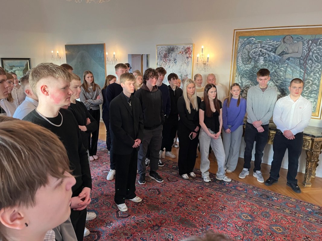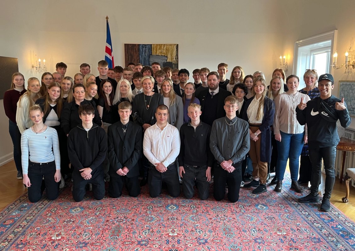 Forseti tekur á móti hópi nemenda úr Framhaldsskólanum á Húsavík. Hópurinn er í vettvagnsferð á suðvesturhorni gagngert í þeim erindagjörðum að kynna sér Bessastaði og forsetaembættið. kom Forseti ávarpaði nemendurna og svaraði spurningum þeirra. Að því loknu skoðuðu gestirnir forsetasetrið og fræddust um sögu þess.