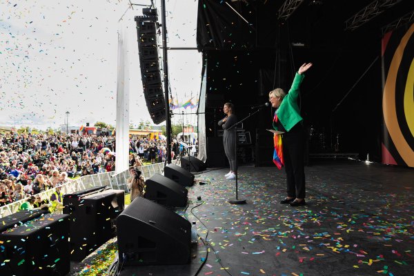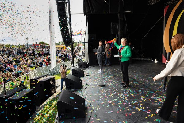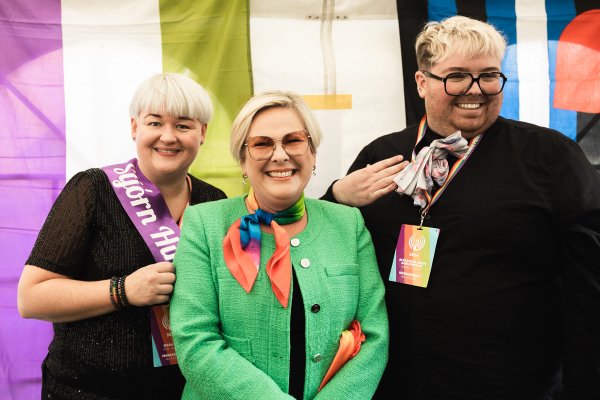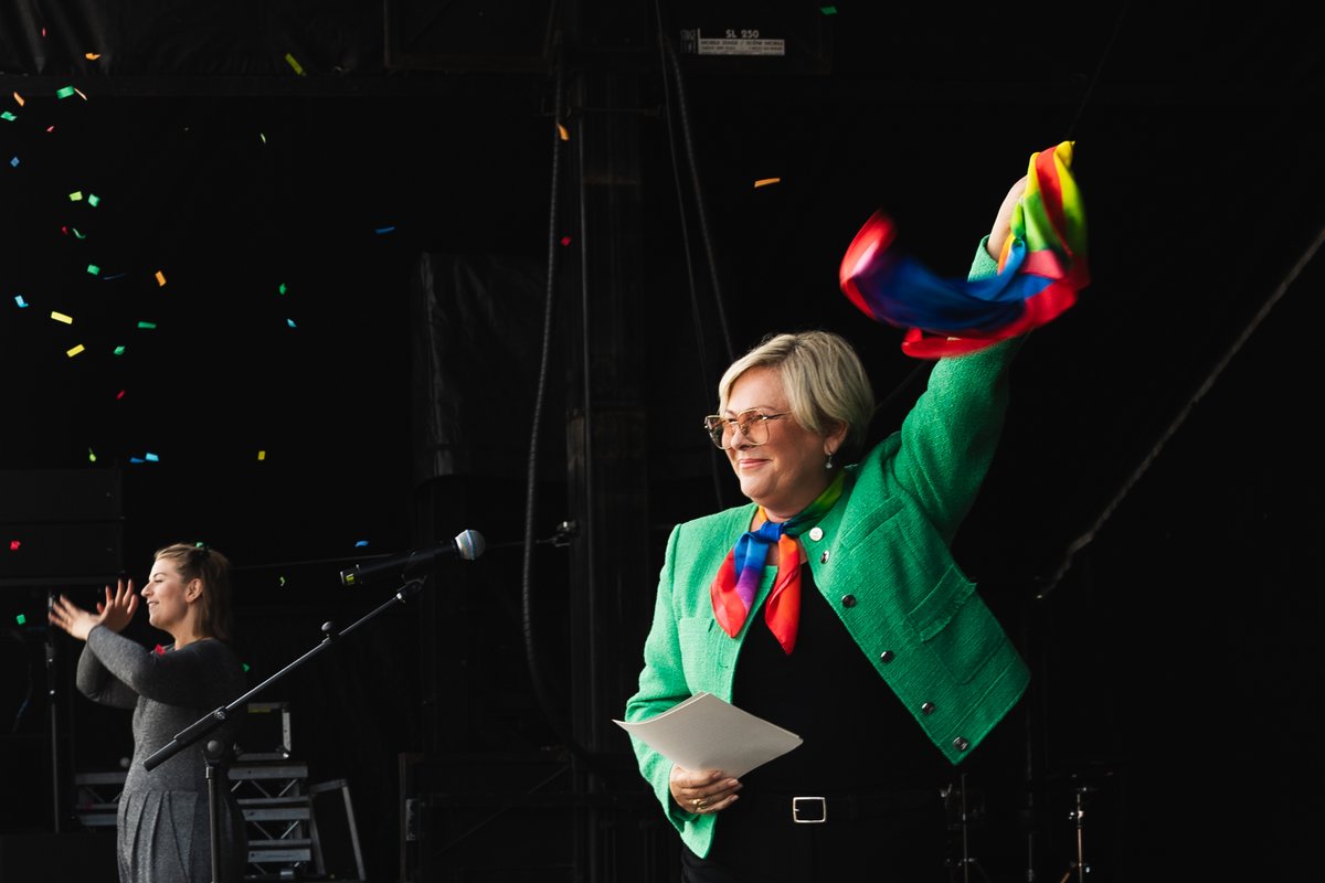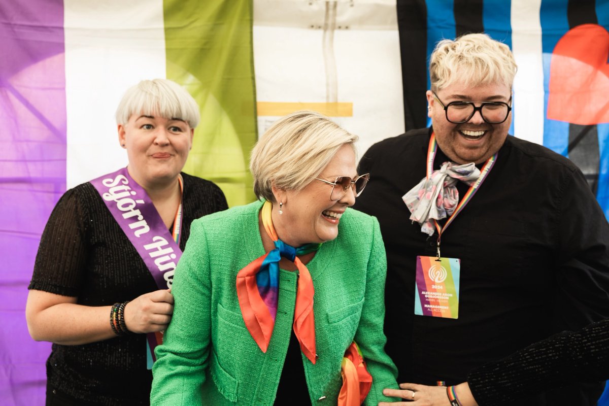 Forseti flytur hátíðarræðu við lok Gleðigöngunnar á Hinsegin dögum í Hljómskálagarðinum Reykjavík. Ljósmynd/Sunna Ben