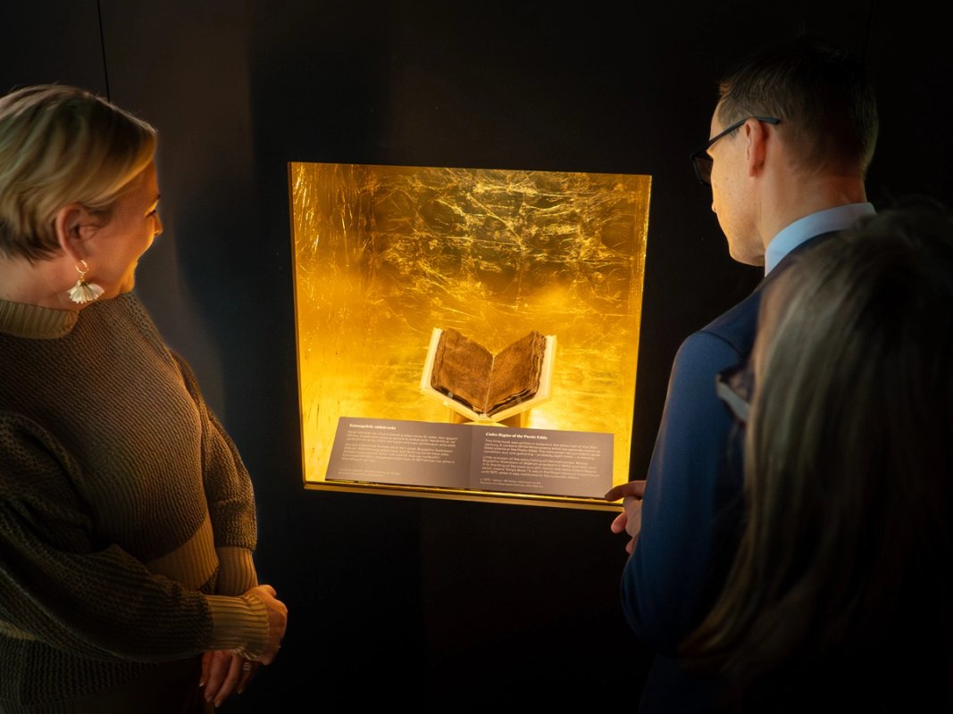 Forsetahjón skoða handritasýninguna í Eddu. Ljósmynd: Sigurður Stefán Jónsson