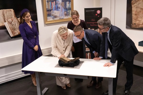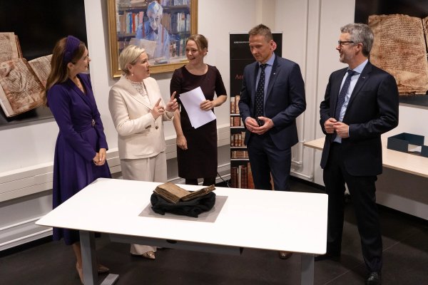 Forsetahjón og konungshjón heimsækja Árnasafn í Kaupmannahafnarháskó...