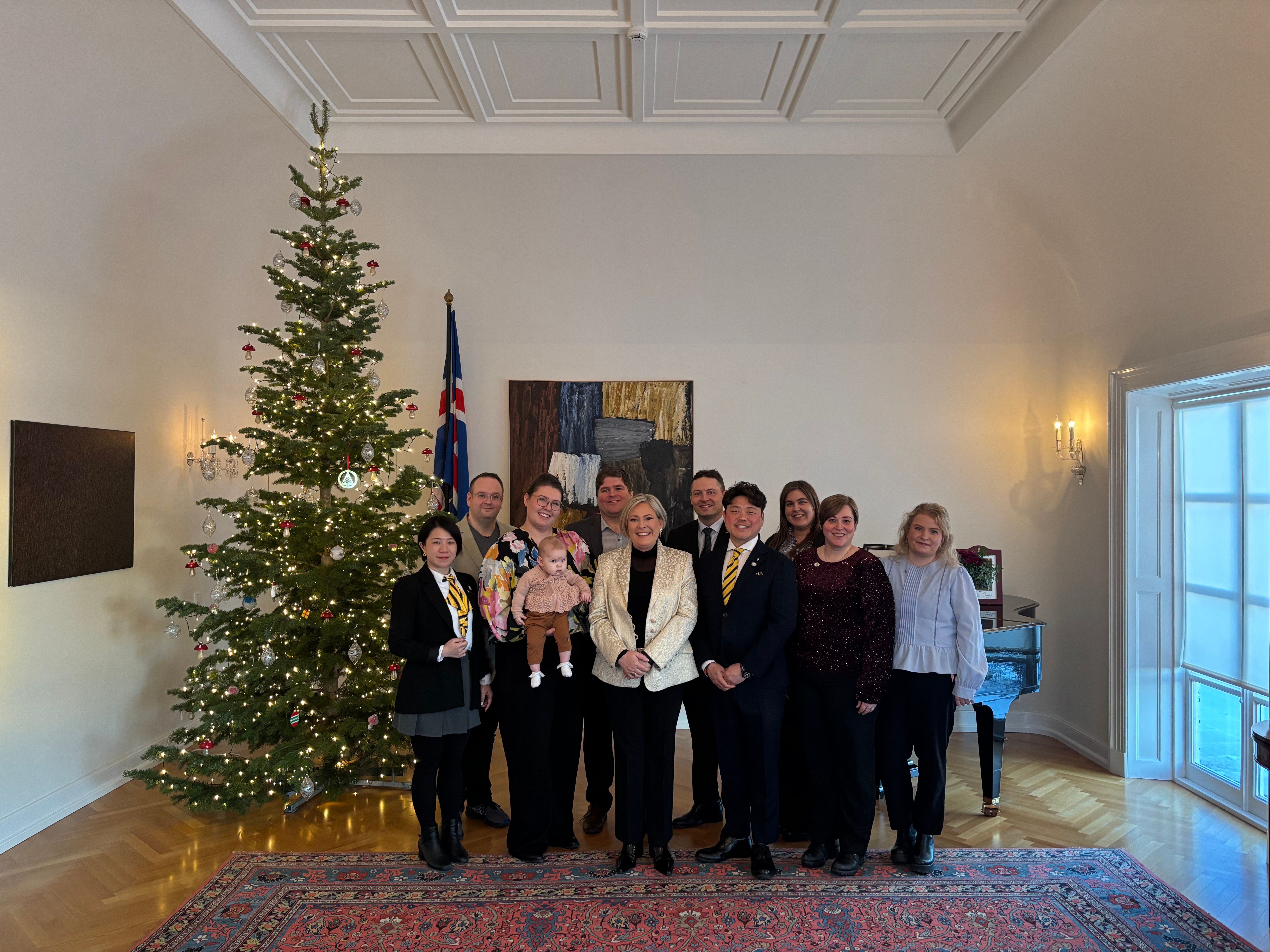 Forseti ásamt gestunum frá Junior Chamber. Ljósmynd: EFÍ.