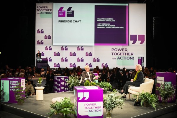 Forseti tekur, ásamt Mary Robinson, fyrrverandi forseta Írlands, þátt í opnunarathöfn Heimsþings kvenleiðtoga, Reykjavik Global Forum, sem samtökin Women Political Leaders standa árlega fyrir á Íslandi í samvinnu við íslensk stjórnvöld. Þingið fer fram í Hörpu og var opnunarviðburðurinn á formi opins samtals milli forseta og Mary Robinson sem var fyrsti kvenforseti Írlands og sat í embætti á árunum 1990-1997.