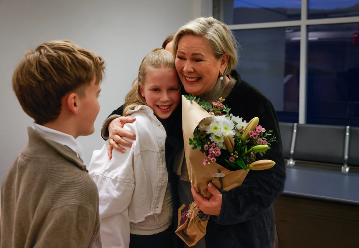 Forseti ásamt Elísabetu Davíðsdóttur og Jóel Huginssyni sem afhentu henni blóm við komuna til Vestmannaeyja. Ljósmynd: Bjarni Þór Georgsson.