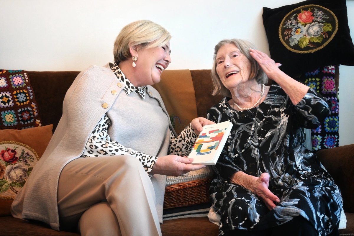 Forseti heimsækir skáldkonuna Hólmfríði Sigurðardóttur, en hún orti ljóðið Leitum sem forseti gerði að lokaorðum sínum í innsetningarræðu við embættistökuna þann 1. ágúst. Hólmfríður starfaði sem sérkennari um árabil en býr nú á hjúkrunarheimilinu Mörk og er 93 ára gömul. Í gegnum tíðina orti hún gjarnan tækifærisljóð sem hún tók loks saman þegar hún var komin á níræðisaldur og gaf út í bókinni Dagar sóleyjanna árið 2015. Forseti heimsótti Hólmfríði til að færa henni þakkir fyrir afnot af ljóðinu í innsetningarræðunni. Um leið færði skáldið forseta áritað eintak af bók sinni. Ljóð Hólmfríðar má lesa hér: