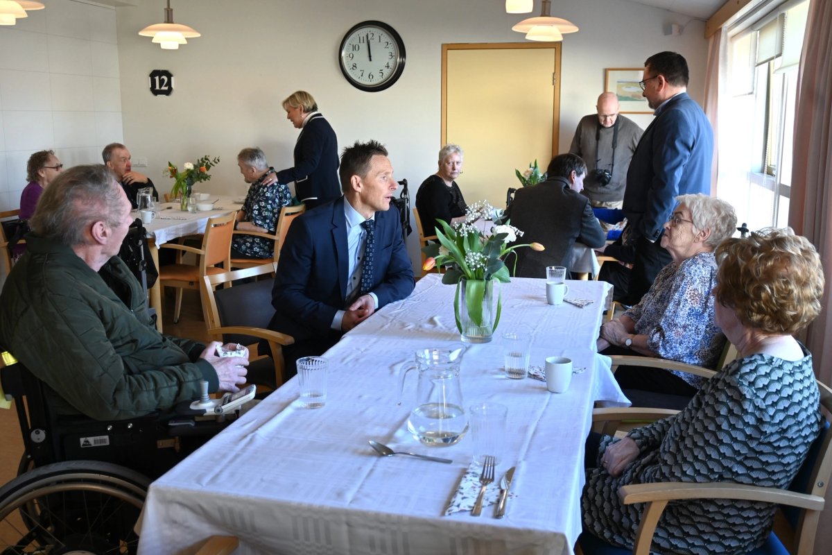 Leikskólinn Sjónarhóll var heimsóttur næst og loks hjúkrunarheimilið Skjólgarður þar sem forsetahjón ræddu við íbúa. Auk þess var farin vettvangsferð um nýja hjúkrunarheimilið sem er í byggingu og tekið verður í notkun í sumar. Forsetahjón snæddu síðan hádegisverð á Ekru með félagsmönnum í Félagi eldri Hornfirðinga. Formaður félagsins, Ari Jónsson, bauð forsetahjón velkomin með stuttri tölu og þá var hlýtt á lifandi tónlist.