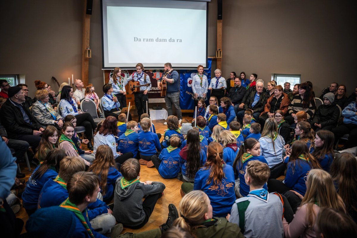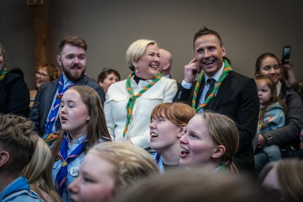 Forsetahjón voru gestir á samkomunni, ræddu við skáta á öllum aldri og tóku þátt í samsöng við upphaf hátíðarkvöldvöku þar sem sungnir voru skátasöngvar.