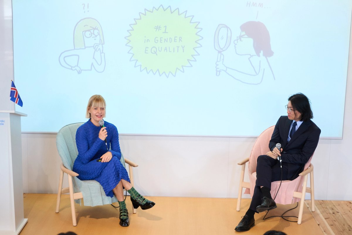 Í norræna skálanum, þar sem Ísland er í samstarfi við hin fjögur Norðurlöndin, fór fram bókmenntaviðburður með Rán Flygenring, myndlistarmanni og rithöfundi, og Shohei Akakura þýðanda, um bók Ránar, Vigdís: bókin um fyrsta konuforsetann, sem nýverið kom út á japönsku. Borgarstjóri Reykjavíkur, Heiða Björg Hilmisdóttir, flutti opnunarávarp.