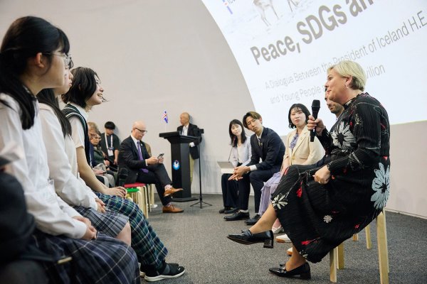 Fyrsti viðburður dagsins var samtal forseta við ungt fólk frá Osaka um friðarmál, framtíðaráskoranir og markmið Sameinuðu þjóðanna um sjálfbærni. Umræðustjóri var Yuki Nakane, frá fjölmiðlinum RCC í Hiroshima.