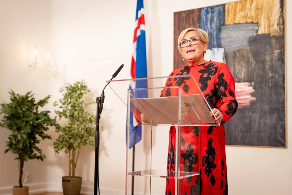 Forseti afhendir bókmenntaverðlaun.