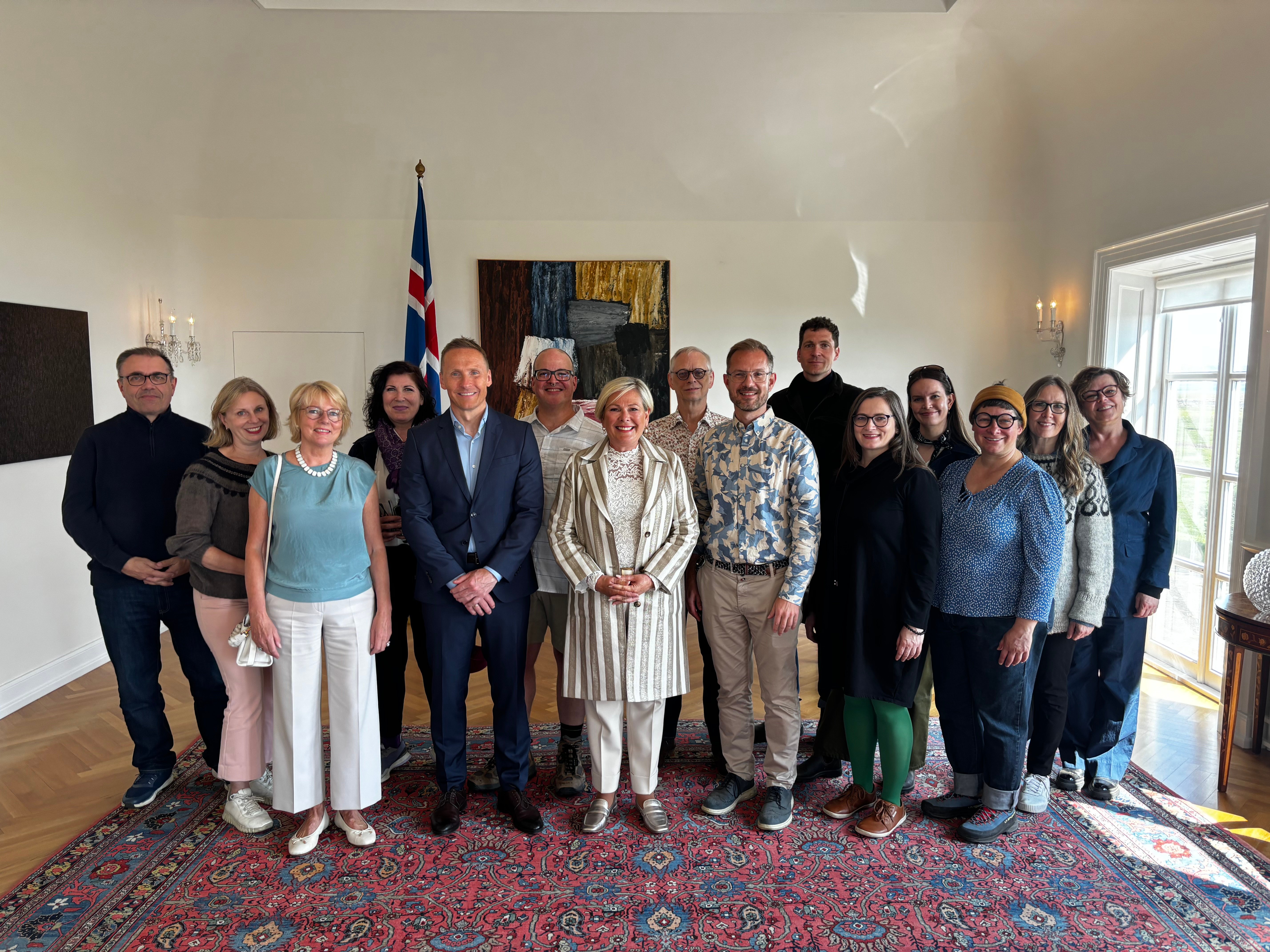 Forseti tekur á móti íslenskukennurum sem starfa við háskóla erlendis en ársfundur þeirra er haldinn hér á landi um þessar mundir. Forsetanum voru færðar þakkir fyrir að styðja íslenska tungu á heimsvísu.