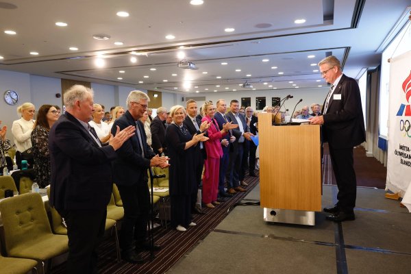 Guðmundur Ingi Kristinsson, mennta- og barnamálaráðherra, flutti einnig ávarp og greindi frá því að undirbúningur nýrrar þjóðarhallar væri langt á veg kominn.