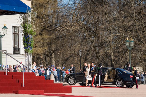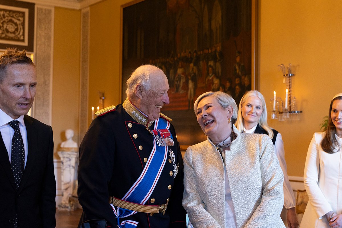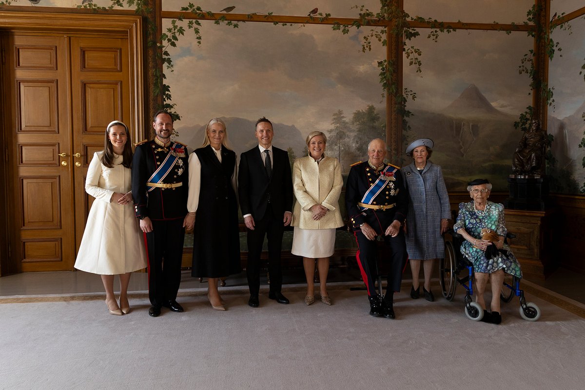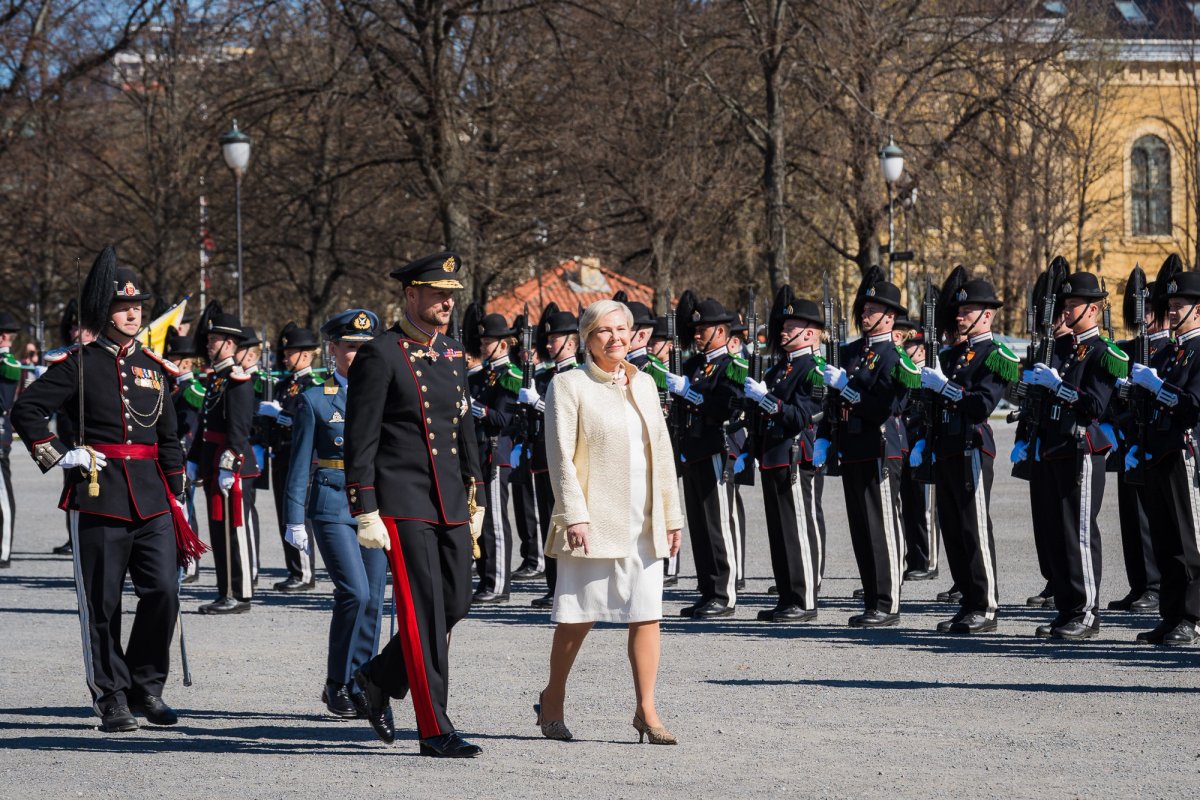 Gestgjafar forsetahjóna í Noregi eru Haraldur V. konungur og Sonja drottning ásamt Hákoni krónprins og Mette-Marit krónprinsessu. Að auki tekur elsta dóttir þeirra, Ingrid Alexandra prinsessa, nú þátt í sinni fyrstu ríkisheimsókn. Því voru þrjár kynslóðir norsku konungsfjölskyldunnar viðstaddar móttökuathöfn forsetahjóna við Óslóarhöll. Þar voru þjóðsöngvar beggja landa leiknir og forseti gekk og kannaði heiðursvörð. Þá gáfu bæði forsetahjón og krónprinshjónin sér góða stund til að ræða við Íslendinga búsetta í Noregi og Norðmenn sem safnast höfðu saman við höllina af þessu tilefni.