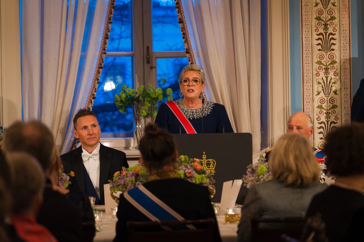 „Þó að við séum að sumu leyti ólík, þá eru tengsl norsku og íslensku þjóðanna einstök – við erum runnin af sömu rót og saga okkar samofin. Íslendingar sóttu strax í upphafi mikið til Noregs og enn þykir Íslendingum nærtækt að leita til Noregs til viðskipta eða dvalar," sagði í ræðu forseta.