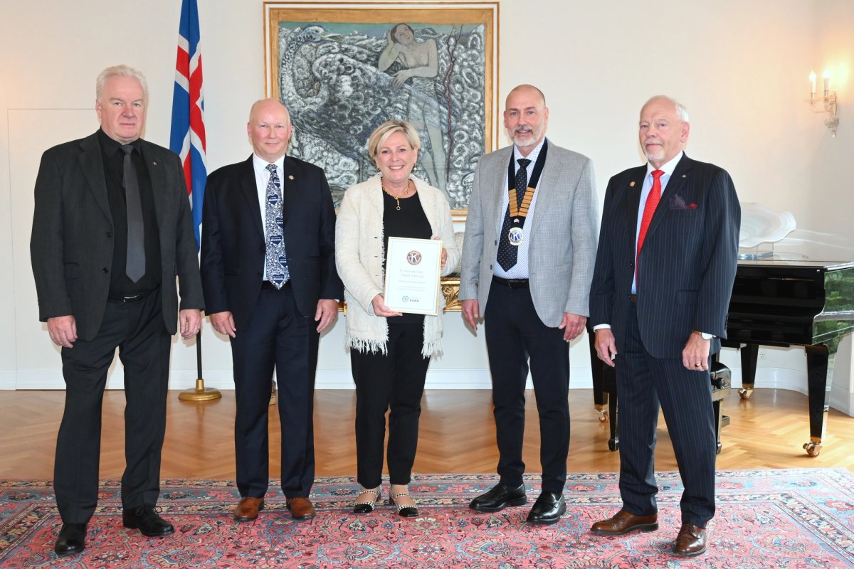 Forseti ásamt fulltrúum Kiwanis á Íslandi, þeim Eyþóri K. Einarssyni, Sæmundi H. Sæmundssyni, Guðlaugi Kristjánssyni og Birni B. Kristinssyni. Ljósmynd: Skrifstofa forseta/Una Sighvatsdóttir