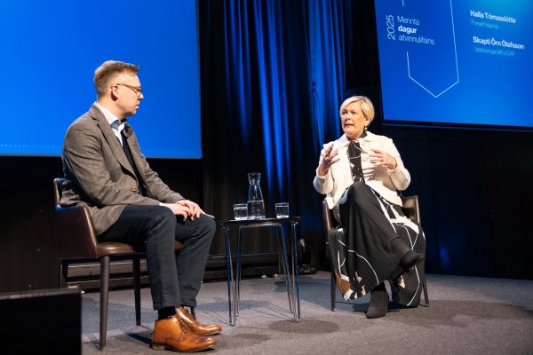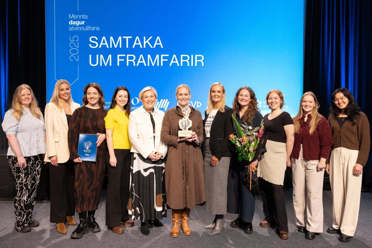 Þá tók við verðlaunaafhending þar sem forseti afhenti verðlaun í tveimur flokkum til fyrirtækja sem þykja skara fram úr í fræðslu- og menntamálum. Arion banki var verðlaunaður sem Menntafyrirtæki ársins og hugbúnaðarfyrirtækið Alda var útnefnt menntasprotinn 2025.