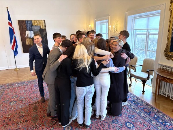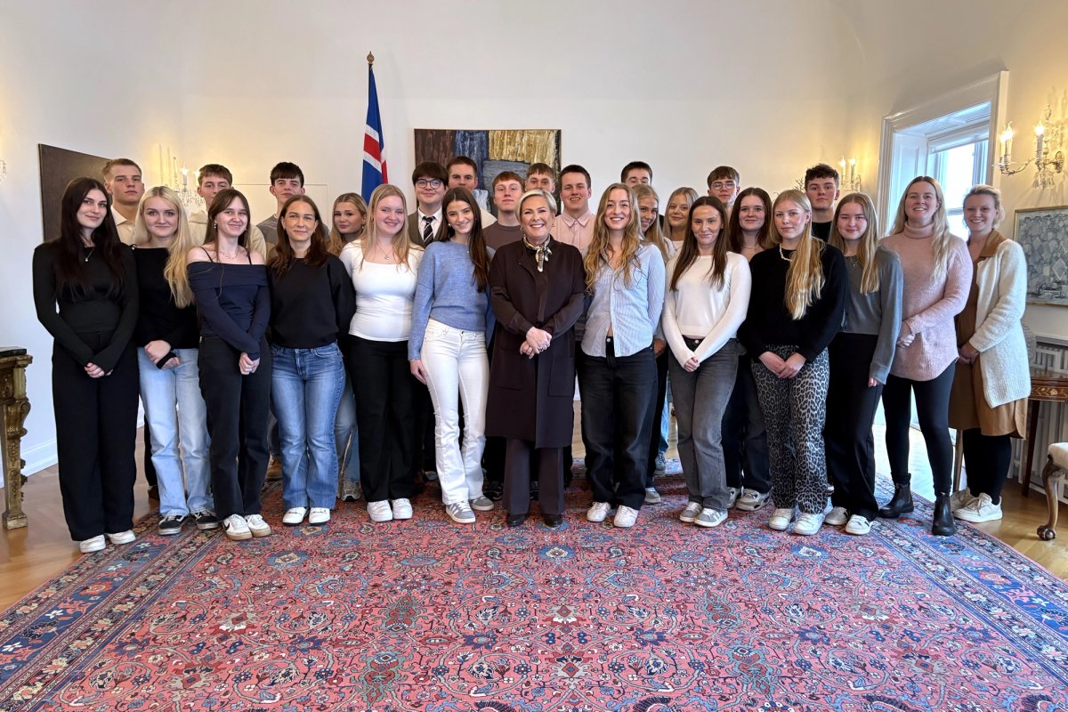 Forseti tekur á móti nemendum í stjórnmálafræði við Menntaskólann að Laugarvatni. Rætt var um stöðu forseta í stjórnskipun landsins og skyld málefni. Heimsóknin var liður í árlegri námsferð nemenda af öðru ári á höfuðborgarsvæðið, en fyrr um daginn hafði hópurinn einnig heimsótt Alþingi.