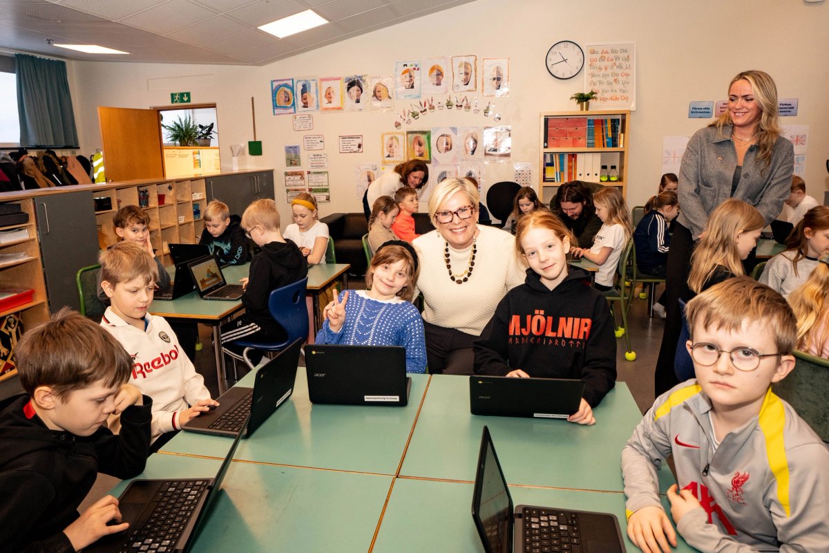 Forseti ræddi við nemendur um notkun snjalltækja og netöryggi. Sagði hún mikilvægt að stuðla að því að fólk á öllum aldri geti verið ábyrgir þáttakendur í stafrænum heimi, sem reynist mörgum flókinn. Þá tóku forseti og Bryony Mathew, sendiherra Bretlands, þátt í að spila leikinn með nemendum og svaraði spurningum frá þeim.