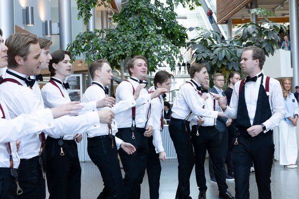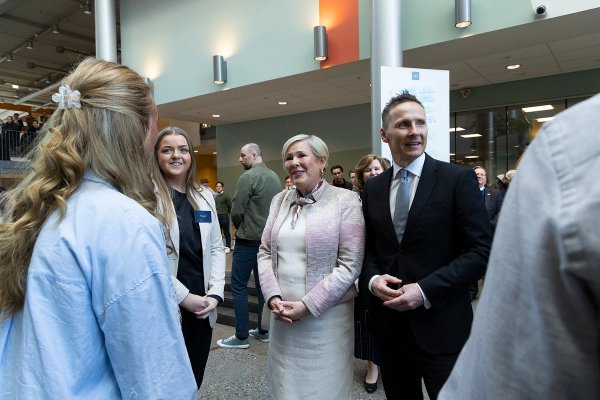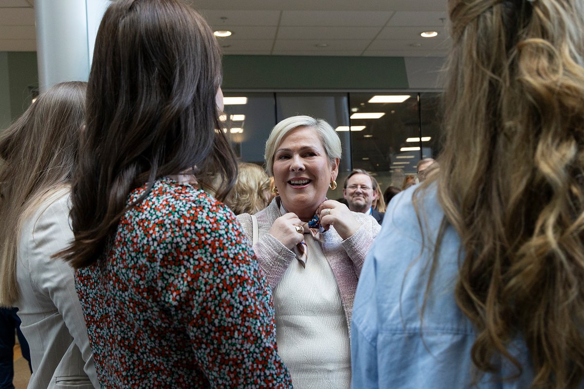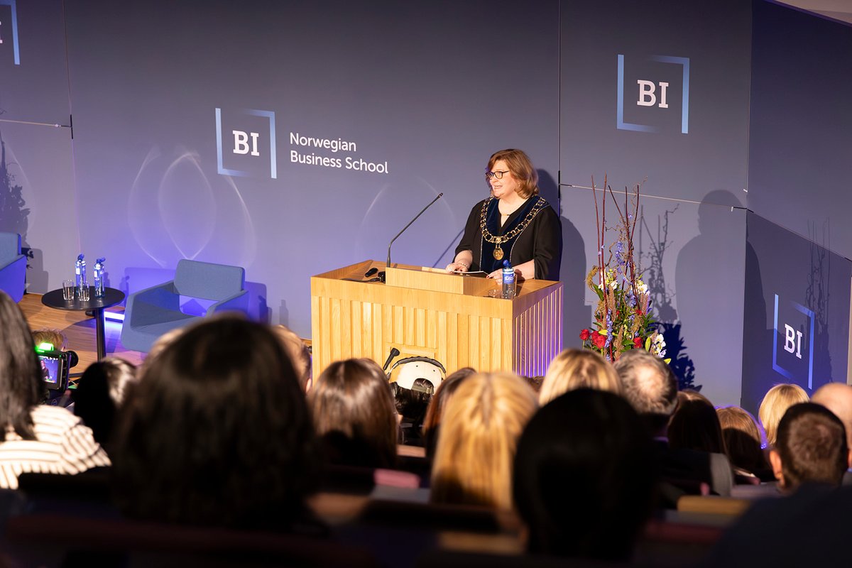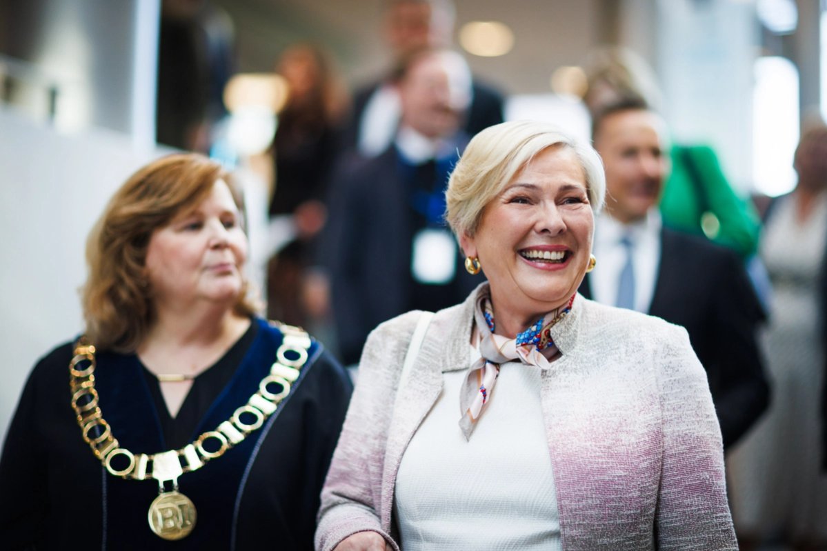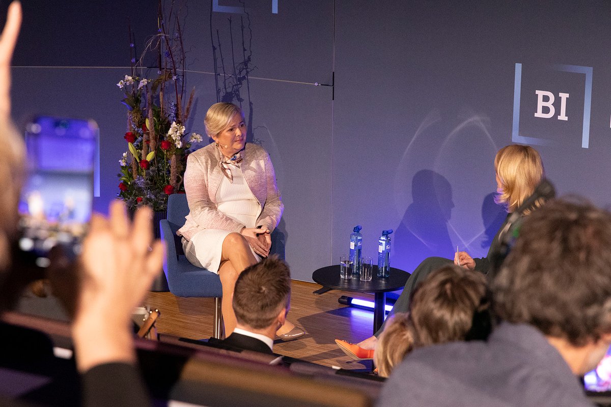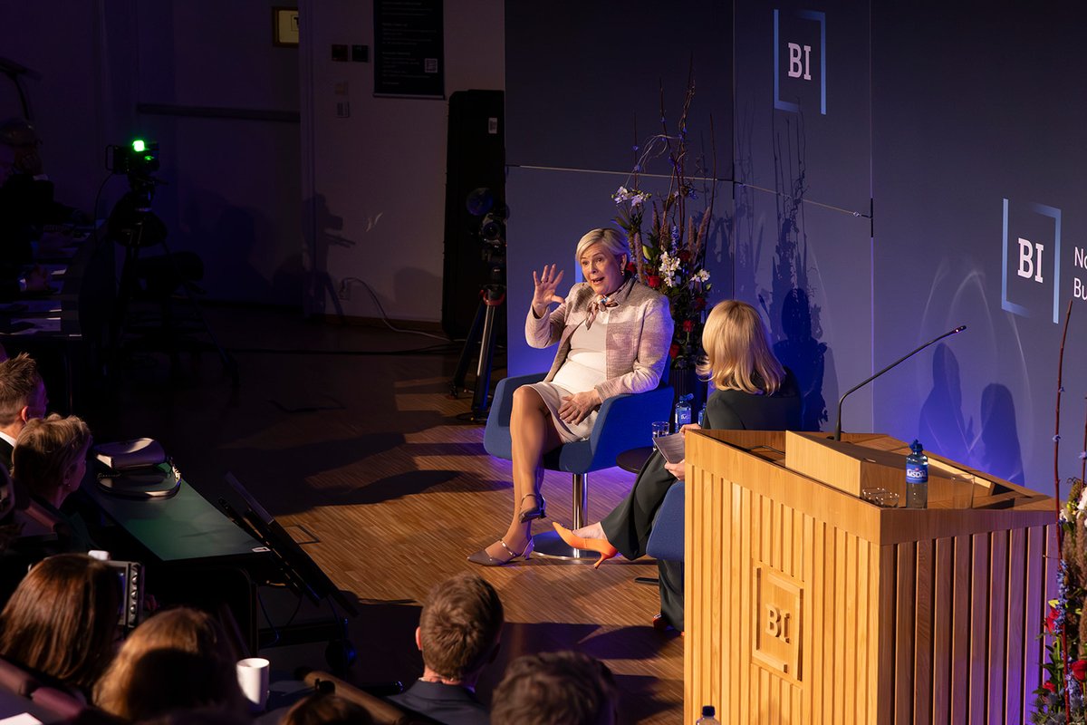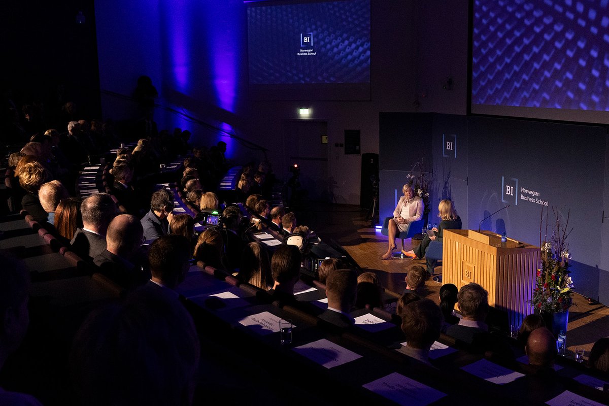 Rektor viðskiptaháskólans, Karen Spens, tók á móti gestunum og sýndi þeim skólann. Á sal fór svo fram viðburður fyrir nemendur og starfslið þar sem forseti tók þátt í arinspjalli um ábyrga forystu á viðsjárverðum tímum. Spyrill var Kristine Dahl Steidel, forstjóri Microsoft Norway.