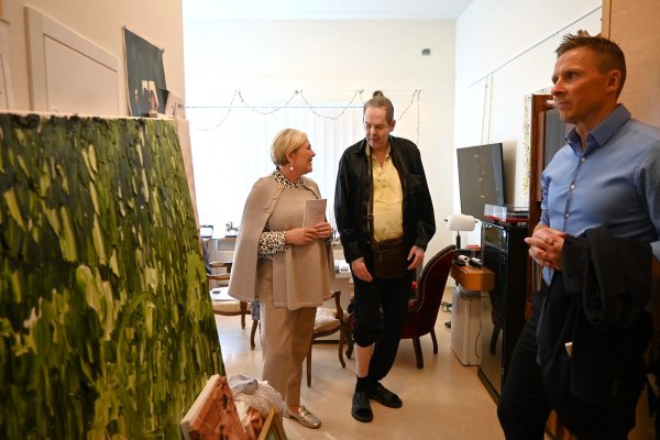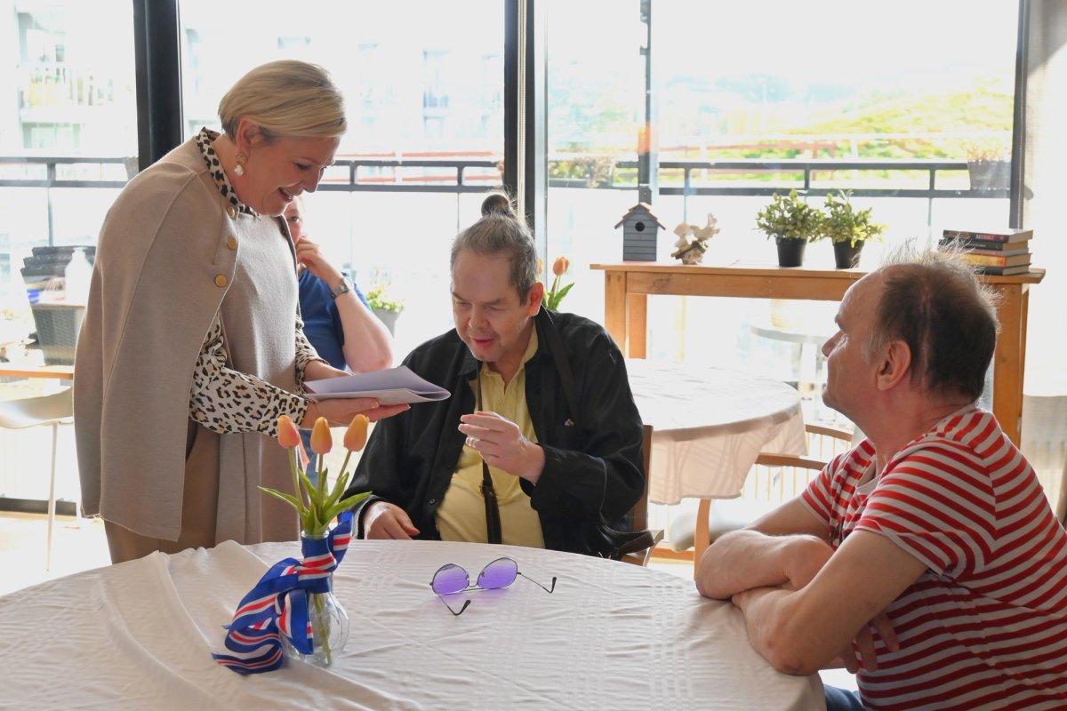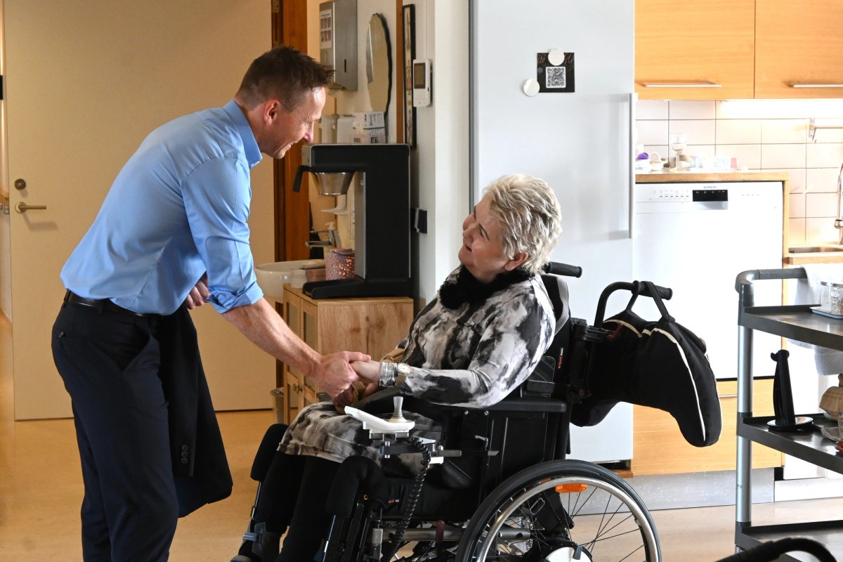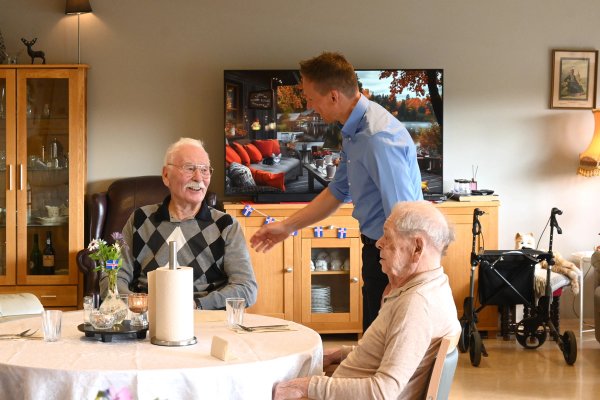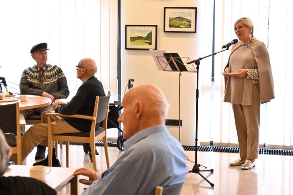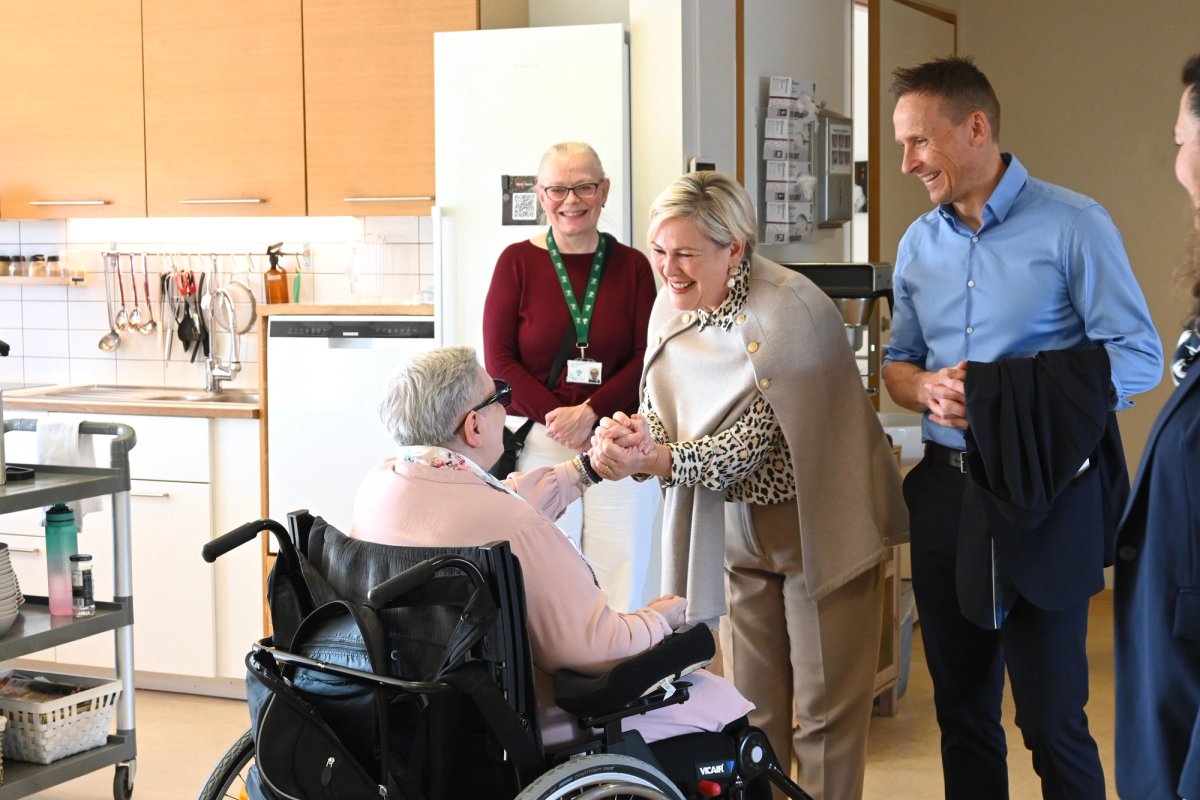 Forsetahjón heimsækja íbúa hjúkrunarheimilis.