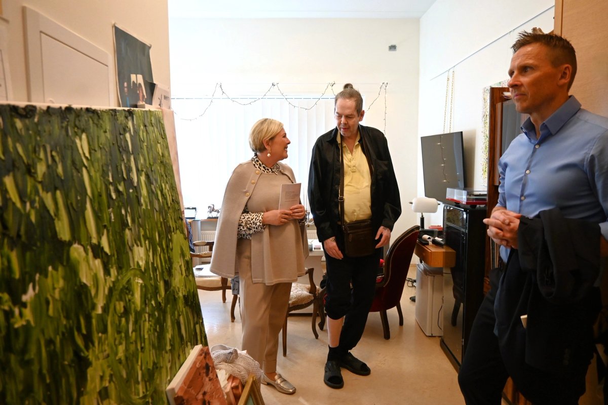 Theodóra Hauksdóttir, framkvæmdastjóri hjúkrunar, og Gísli Páll Pálsson, stjórnarformaður Grundarheimilanna, tóku á móti forsetahjónum og fylgdu þeim fyrst með leiðsögn um 2. hæð hjúkrunarheimilisins þar sem 31 býr. Forsetahjón ræddu við heimilisfólk og heimsóttu nokkur þeirra.