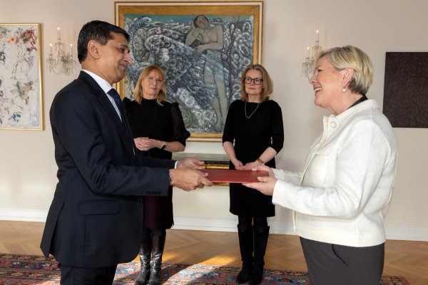 Forseti tekur á móti nýjum sendiherra Sri Lanka, Kapila Thushara Fonseka, sem afhendir trúnaðarbréf sitt á Bessastöðum.