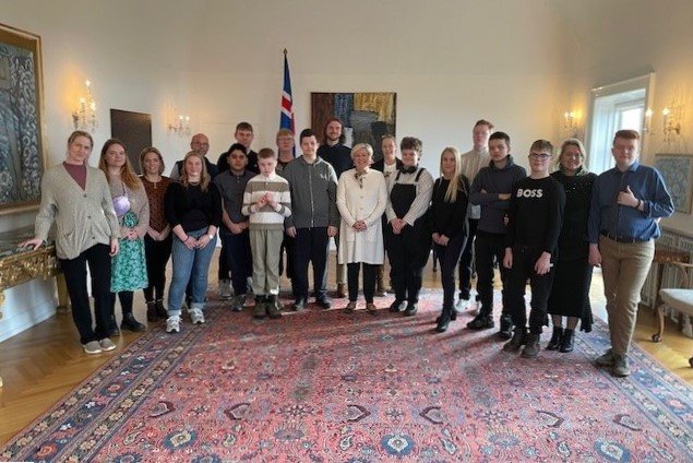 Forseti tekur á móti nemendum við sérdeild Foldaskóla í Grafarvogi, kennurum þeirra og stuðningsfulltrúum. Nemendurnir, sem eru í 8.-10. bekk, fara í skipulagðar vettvangsferðir alla fimmtudaga og að þessu sinni lá leiðin á Bessastaði. Forseti spjallaði við ungmennin um starfið og lífið á Bessastöðum auk þess sem þau fengu leiðsögn um forsetasetrið.