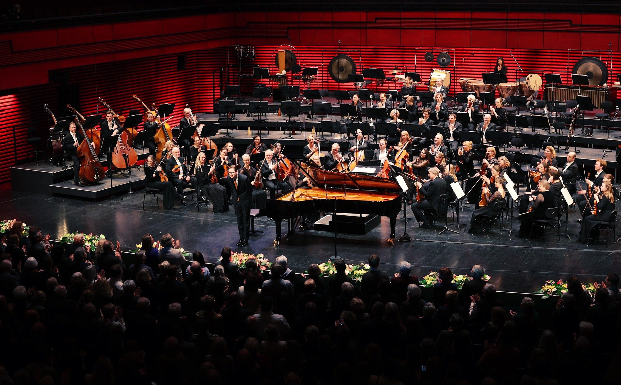 Á afmælistónleikunum lék hljómsveitin stórvirki úr tónlistarsögunni undir stjórn Evu Ollikainen, aðalhljómsveitarstjóra Sinfóníuhljómsveitar Íslands. Með hljómsveitinni komu fram Kór Hallgrímskirkju og Kór Langholtskirkju og frumfluttu Darraðarljóð eftir Jón Leifs en tónleikarnir hófust á hátíðarforleik eftir Ingibjörgu Ýri Skarphéðinsdóttur. Einleikari var Víkingur Heiðar sem flutti fimmta píanókonsert Beethovens og tónleikunum lauk með flutningi á Ein Heldenleben eftir Richard Strauss.