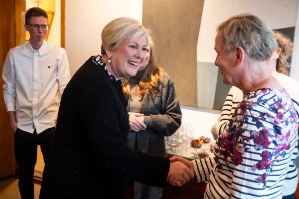 Forseti á fund með höfundum barna- og ungmennabóka.