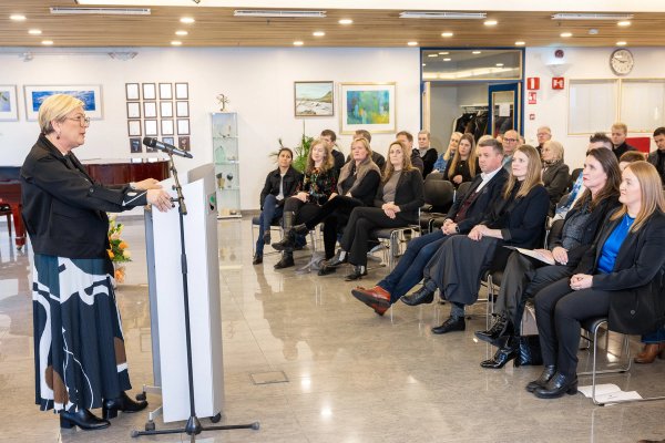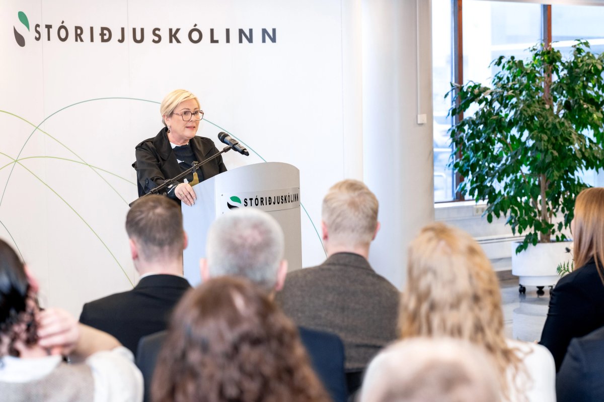 Forseti flytur ávarp við útskriftarathöfn framhaldsnema.