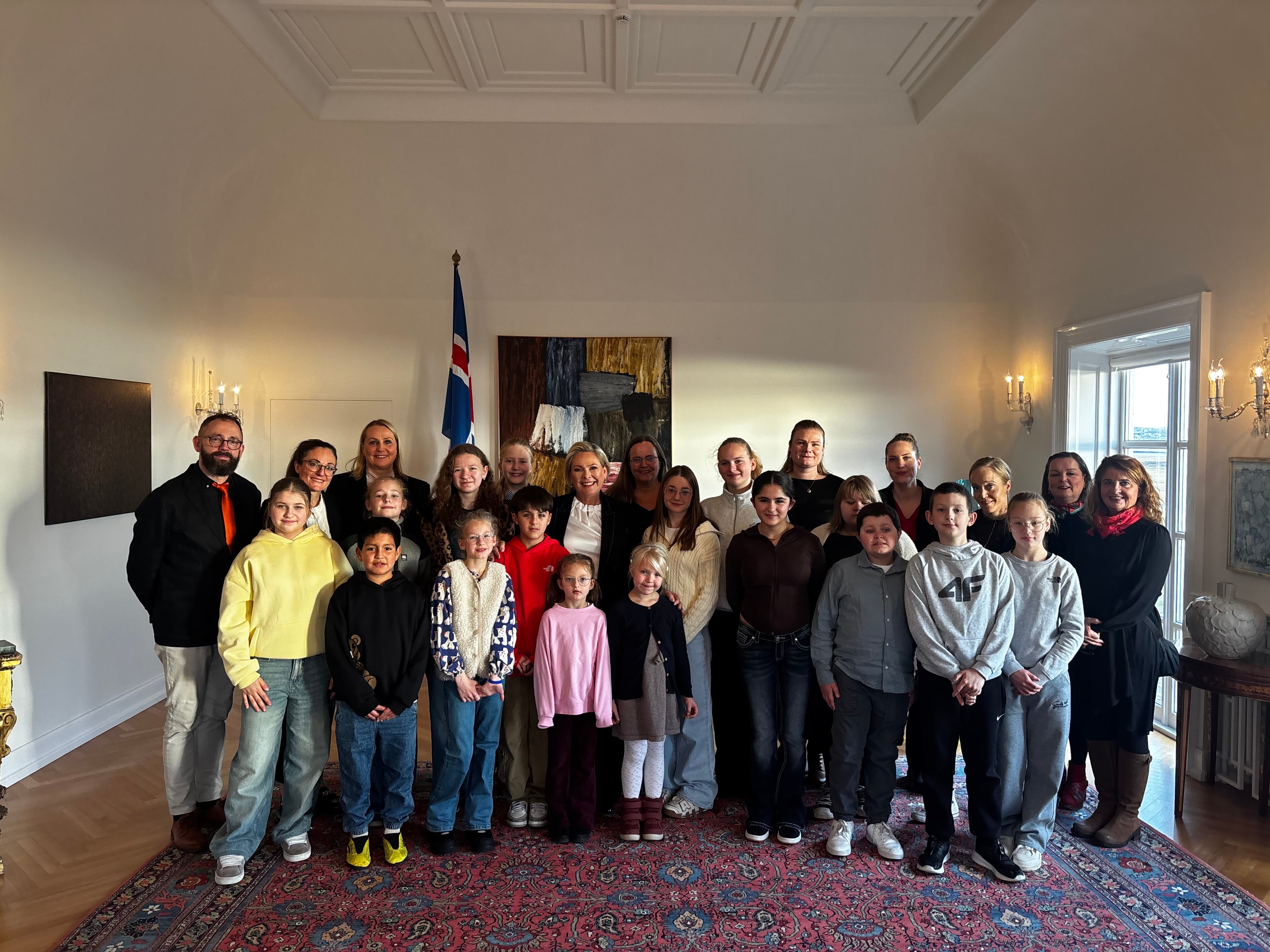 Forseti ásamt þátttakendum í Táknmálseyjunni og aðstandendum. Ljósmynd: EFÍ.