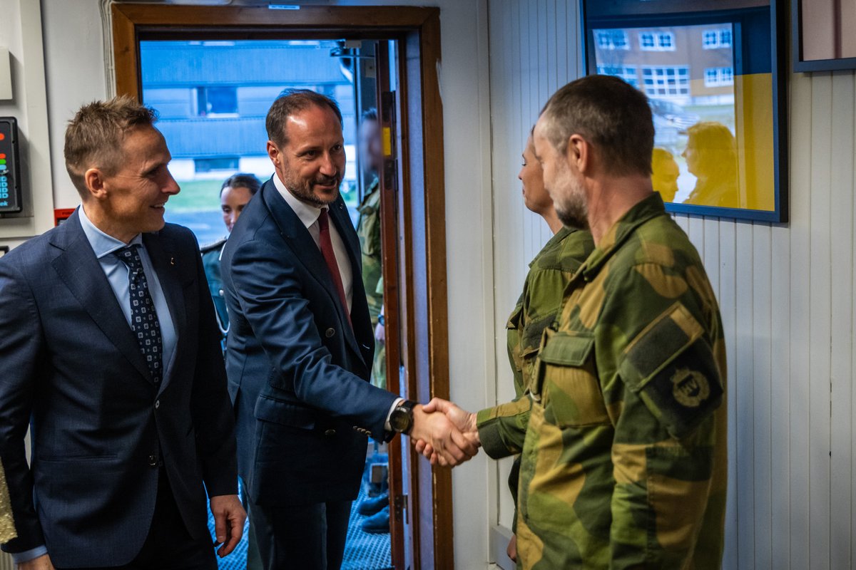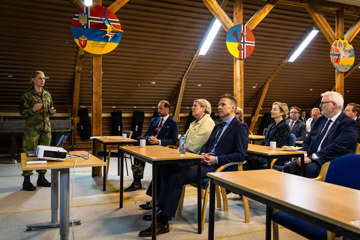 Forsetahjón og Hákon, krónprins Noregs, heimsækja heimavarnardeild norska hersins, HV-12, í Værnes í Þrándheimi. Þar býðst úkraínskum hermönnum öflug þjálfun og menntun frá norskum heimavarnarhermönnum sem er hluti af svo kallaðri Gungne-aðgerð sem sett var á laggirnar í apríl 2023.