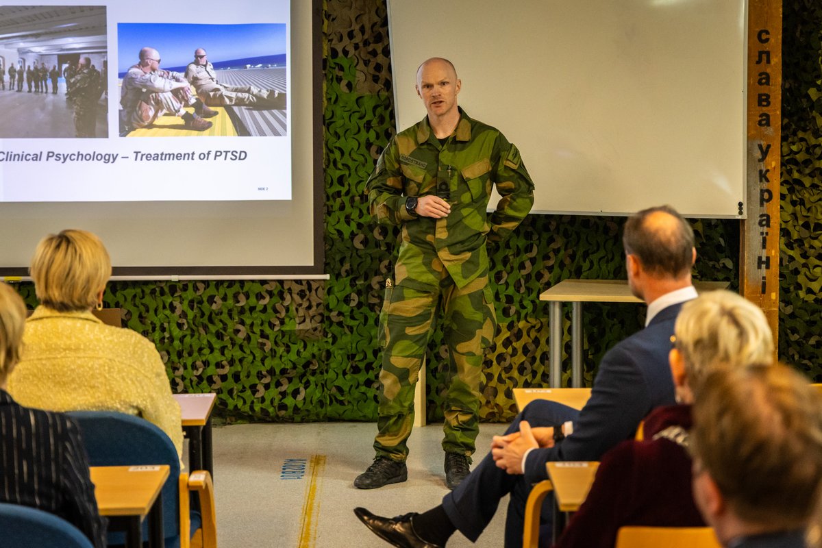 Gestirnir fengu kynningu á verkefninu og áherslu norska hersins á áfallahjálp og bætta geðheilsu hermanna. Þá var þeim sýnt dæmi um þá þjálfun sem hermönnum býðst í neyðaraðstoð á vígvelli, með sérstakri hliðsjón af aðstæðum í Úkraínu.