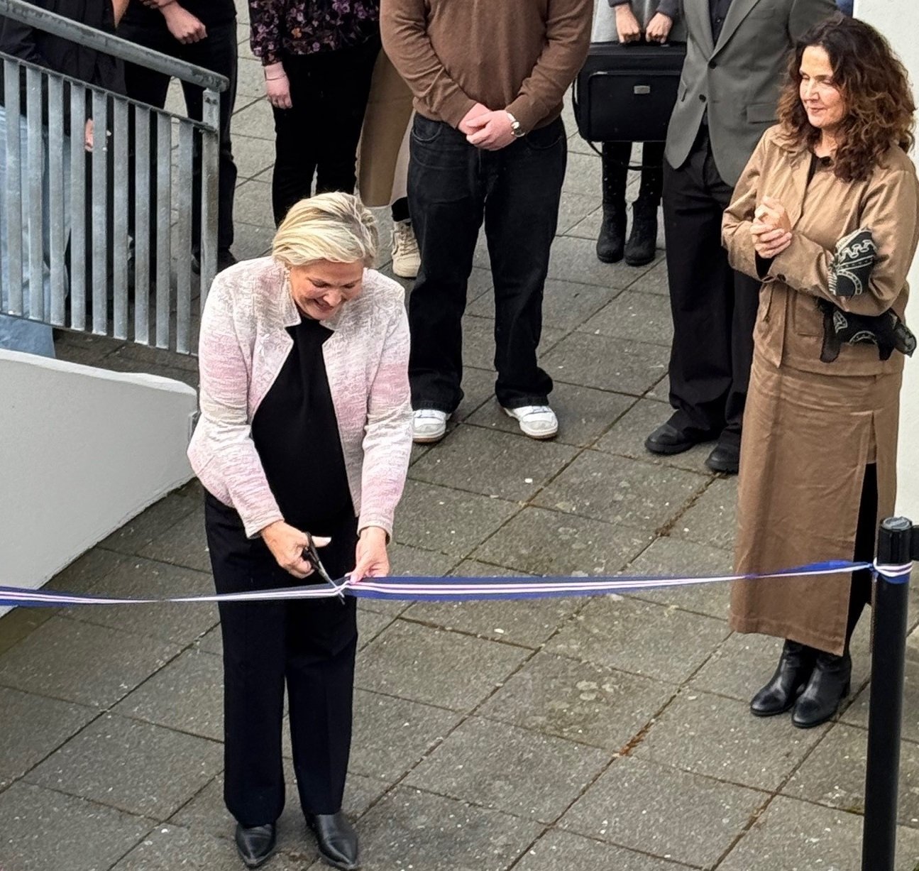 Að lokinni dagskrá á sal vígði forseti útikennslustofu sem komið hefur verið upp við inngang Flensborgarskóla.