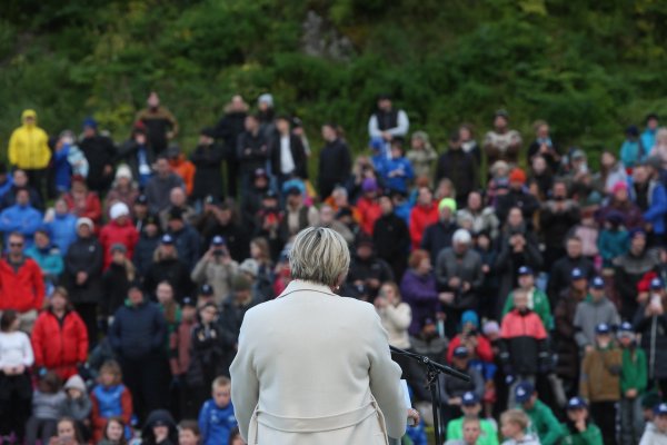 Forseti ávarpar setningu Unglingalandsmóts UMFÍ í Borgarnesi. Ljósmynd/Hafsteinn Snær Þorsteinsson