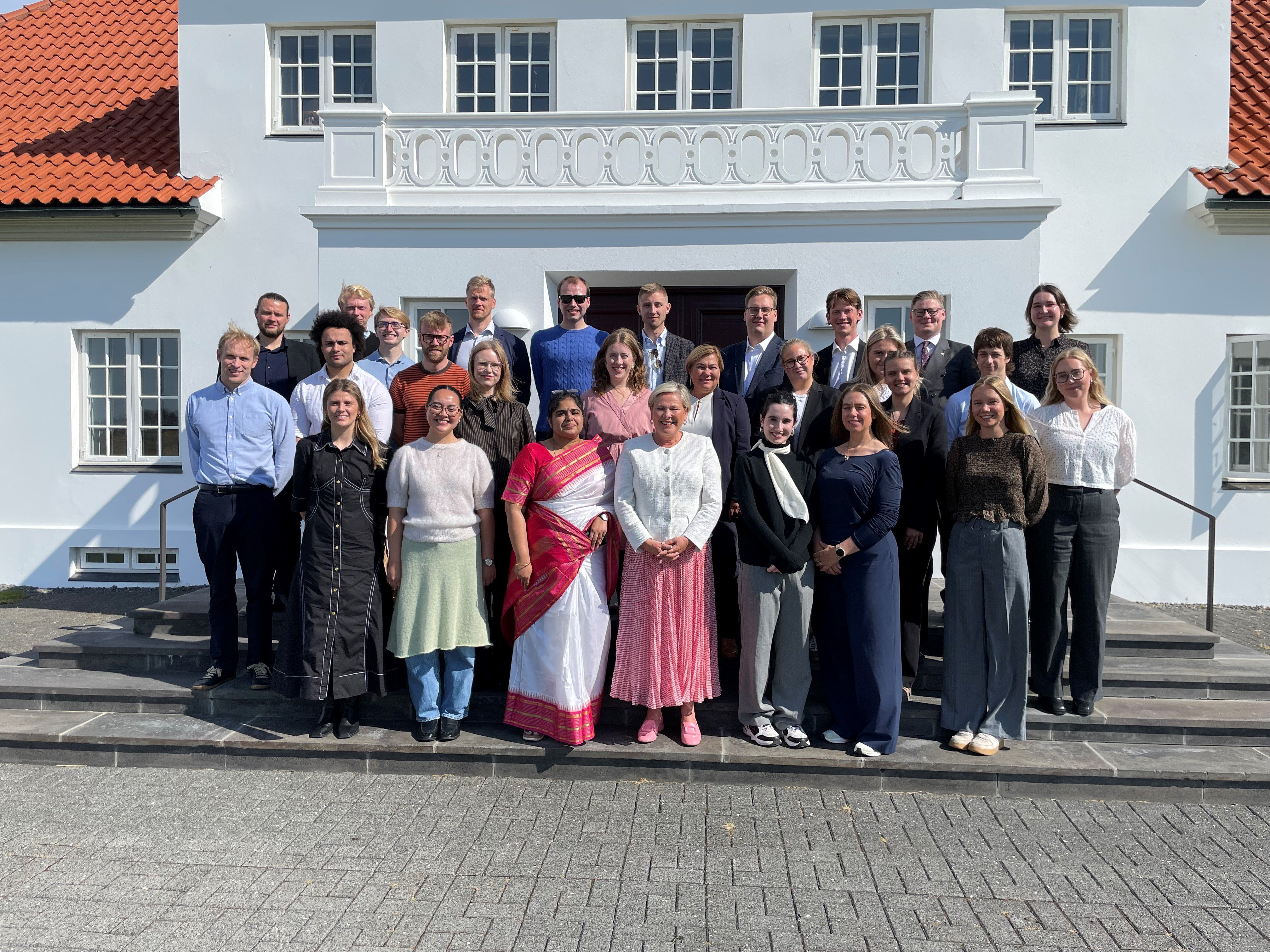 Forseti tók á móti 22 nemendum sem sækja sumarskóla Rannsóknaseturs um smáríki á þessu sinni. Sumarskólinn, sem starfar undir Alþjóðamálastofnun Háskóla Íslands, hefur verið haldinn frá árinu 2003 og koma nemendur að þessu sinni frá 10 ólíkum háskólum í Evrópu. Forseti bauð hópinn velkominn til Bessastaða og ræddi við hann um vægi smáríkja í öryggis- og varnarmálum, en það efni er í brennidepli sumarskólans að þessu sinni.